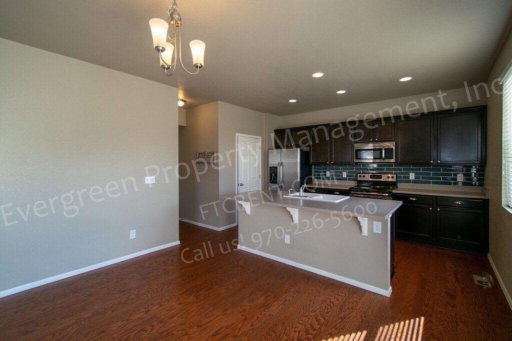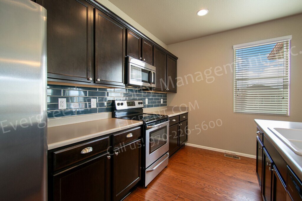 ***360 Tour*** Welcome to this beautiful 4-bedroom/3-bathroom home on a large lot and backing to a greenbelt. Filled with upgrades throughout and centrally located near the highway, dining/shopping, open spaces, amenities, and golf courses. Enjoy the stunning community clubhouse, pool, exercise center, and parks. Features include an open floor plan, large windows, hardwood floors, large kitchen island, and stainless steel appliances. Retreat to the luxurious primary suite with double vanities and huge primary closet. The spacious living/dining areas flowing out to the covered back patio with extended concrete pad are perfect for entertaining. Insulated 3 car garage and large storage shed added. Important Information: - Non-refundable $55 application fee. - All residents 18 years of age and over must apply. - Security deposit is usually equal to 1 month's rent. - Residents must place all utilities in their name. - Residents are responsible for all lawn care and snow removal - Up to 2 pets (up to 45lbs) considered - Spay/Neuter is required for all cats & dogs. - Dogs must be over 1 year of age. - Additional $300 deposit per pet. - $35 Pet Rent per pet. - One-time Tenant Set Up Fee $50. - Renter's Insurance is Required - Visit our website for qualifications and exclusions We only accept applications through our direct website: and we only schedule showings by phone at . Apply online today, or call Evergreen Property Management, Inc at to schedule a showing! for our online application, requirements, and other available units! All applicants are responsible for verifying all information prior to signing a lease agreement. Renter's Insurance is Required. Evergreen Property Management, Inc. cannot verify the accuracy of property information listed on third party websites. Please visit our website to confirm property information and availability. Visit or call .