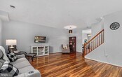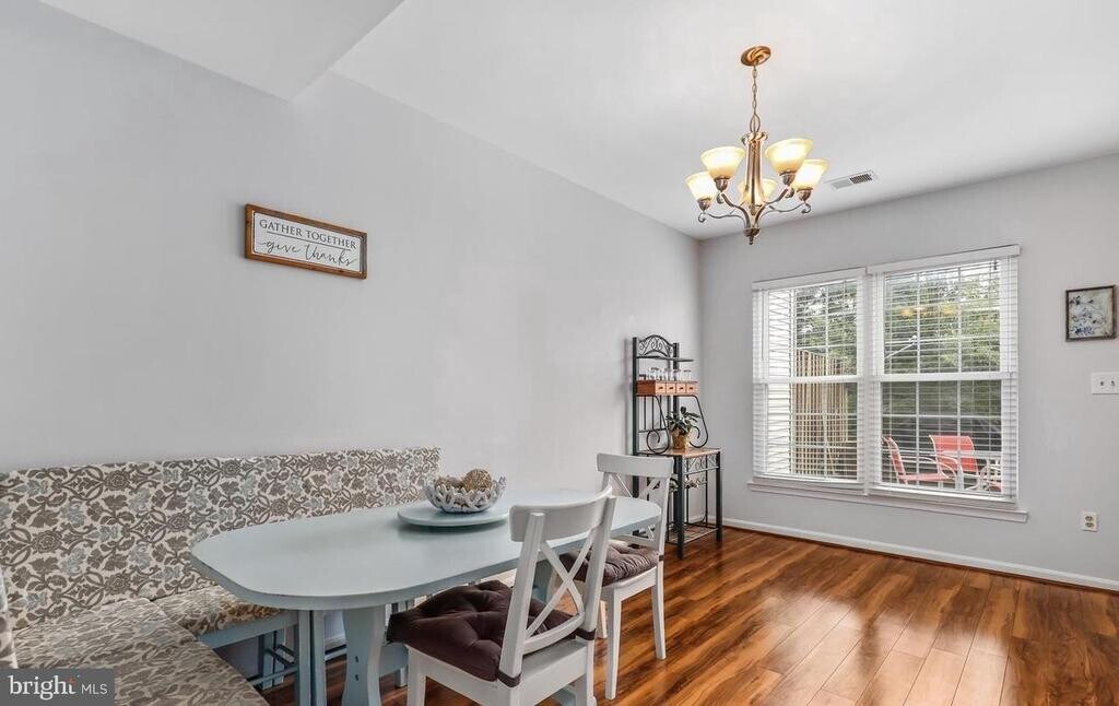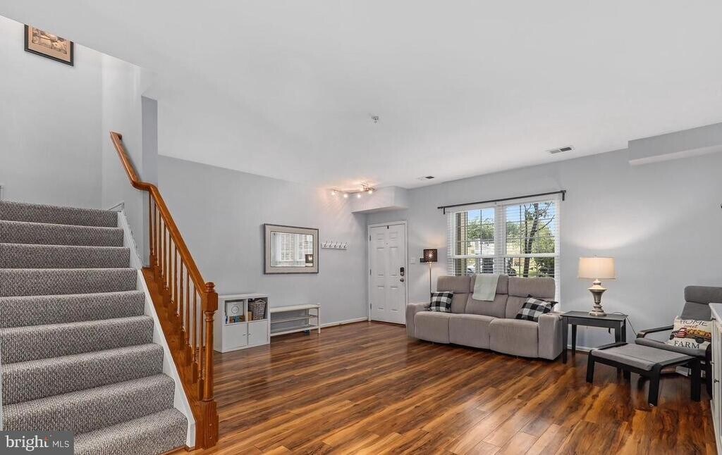 Fall in love with this beautiful and well-kept Centreville condominium. Enjoy the gleaming wood floors on the main level reflecting the natural light from the windows! The kitchen has gas cooking for a chef's delight, and there is a door to the back patio from the kitchen for convenient outdoor access and providing additional natural light. The upper level has hard surface floors throughout, and the washer and dryer are on the upper level, too. The master bedroom has a large walk in closet for extra storage, and one of the secondary bedrooms has access to a balcony overlooking the area. Enjoy the large stone back patio for barbequing!