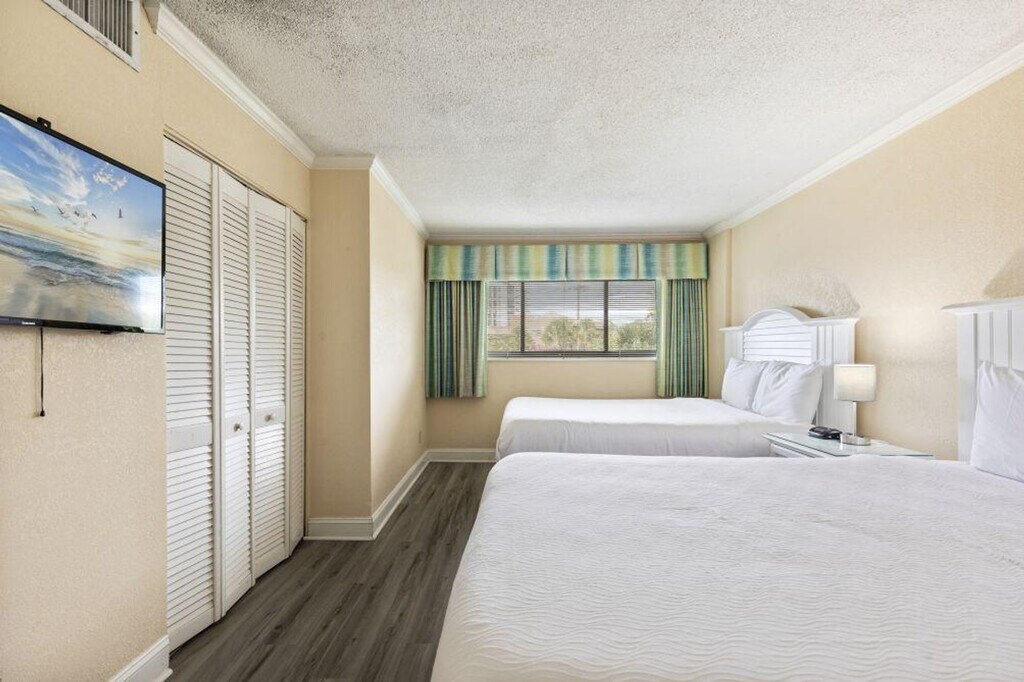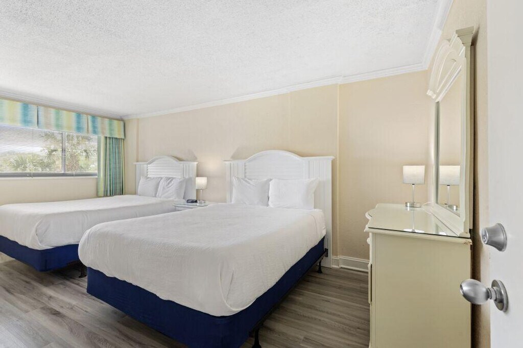 This 2-bedroom condo in Carolina Dunes Resort is a premier direct oceanfront vacation rental hot spot featuring amazing amenities and beautiful oceanfront views. The condo comes fully equipped with a large open kitchen, flat-screen TVs, full-sized washer and dryer, a spacious living room, and fast Wi-Fi. Your private condo overlooks the ocean, providing a breathtaking view of the Atlantic Ocean. Enjoy a refreshing dip in a large outdoor pool while the kids splash around in the nearby safe kiddie pool. Or if you need some “me time,” take the private walkway to the beach. There are free beach chairs and peace of mind with a lifeguard on duty at the beach while you are soaking up the sunshine. Free parking space is available at the property. When you and the family are ready to hit the town and explore the sites, you will find the resort conveniently located nearby with many amusements and attractions. From miniature golf to the famous Myrtle Beach SkyWheel, there is never a dull moment for a vacation in Myrtle Beach. Right in the heart of Myrtle Beach on North Ocean Blvd, it is a short drive to Broadway at the Beach and near 100 premier designer golf courses, Myrtle Beach Sky Wheel, Myrtle Waves Water Park, Family Kingdom Amusement Park, Jurassic Golf, Jungle Safari, Dragon's Lair at Broadway at the Beach, Grande Dunes Golf Club, Pine Lakes Country Club, and Arcadian Shores. Coastline Pest Control performs preventative treatments in every unit on the 3rd Tuesday of each month to ensure a wonderful stay and to make sure you do not take home any unwanted guests. The outdoor pool will be heated from October 1 to December 31 and from March 1 to May 15. It will not be heated in January and February. For same-day late check-ins, you need to get the host's approval before booking. Grilling is prohibited and any violation of this policy will incur a $200 fine. Bicycles, motorcycles, mopeds, and trailers are not allowed. A state identification card or driver's license copy will be requested upon booking. No smoking in the unit or on the balcony, and any violation of the smoking policy will incur a $250 fine plus cleaning costs necessary to remove smoke odors from the unit and/or linens. No pets allowed, and any violation of this policy will incur a $200 fine. Gatherings of more than 8 people, including both overnight guests and visitors, are not allowed and may be subject to eviction. House parties and illegal substances are strictly prohibited and grounds for immediate eviction. You must be at least 21 years old to book this property. Leaving the unit later than the check-out time will incur a late check-out penalty starting from $500. The upgraded internet is perfect for working from the beach with speeds of 200mbs/20mbs per unit. [SI]