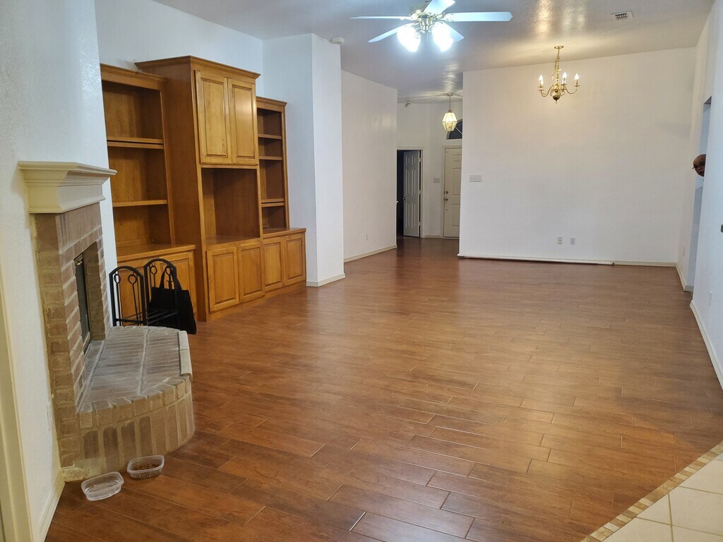 Amazing 4 bedroom, 2 bathroom with an extra room in a quiet neighborhood. Lots of kitchen cabinets. Brand new refrigerator. Washer & dryer available. Tile throughout the house. Close to hospital, park, schools (private and public), Hulen mall, Chisholm Trail Parkway and I-20. Walking distance to the sparkling community pool with grill area for family enjoyment or party. Small dog allowed with deposit and fee. We'll do credit and background check on adults with non-refundable fee of $55 per adult. Total income 3X the rent. Tenant responsible for all utilities and maintenance the yard. No smoking. Please contact Julia at to schedule viewing or questions.