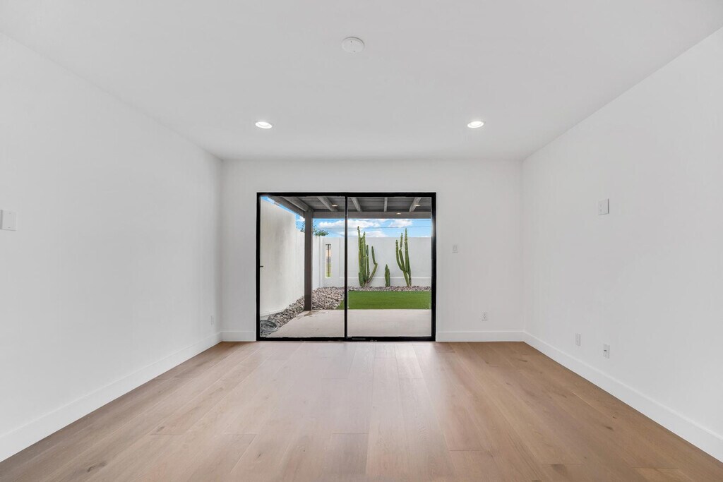 Experience iconic Scottsdale living in this architecturally striking residence located in the highly sought after Sands North community. Known for its timeless mid-century,this home offers a rare blend of character,scale,and modern comfort just minutes from Old Town Scottsdale. Spanning over 3,300 square feet,the home features a dramatic open layout with soaring vaulted ceilings,statement lighting,and a custom glass staircase that serves as a true centerpiece. Clean lines and thoughtfully designed spaces create a bright,open feel while still offering distinct areas for living and entertaining. The home includes three spacious bedrooms and beautifully updated finishes throughout,including hardwood flooring,smooth coated walls,and high end fixtures. The kitchen is sleek and functional with modern cabinetry and ample space for cooking and hosting,while the bathrooms feature a refined,spa-like design with marble and glass elements. Offered unfurnished,this property provides a rare opportunity to bring your own style into a one of a kind architectural setting. Ideally located near Scottsdales top dining,shopping,golf,and nightlife,this home delivers both convenience and a truly elevated living experience. Best Location in Scottsdale!