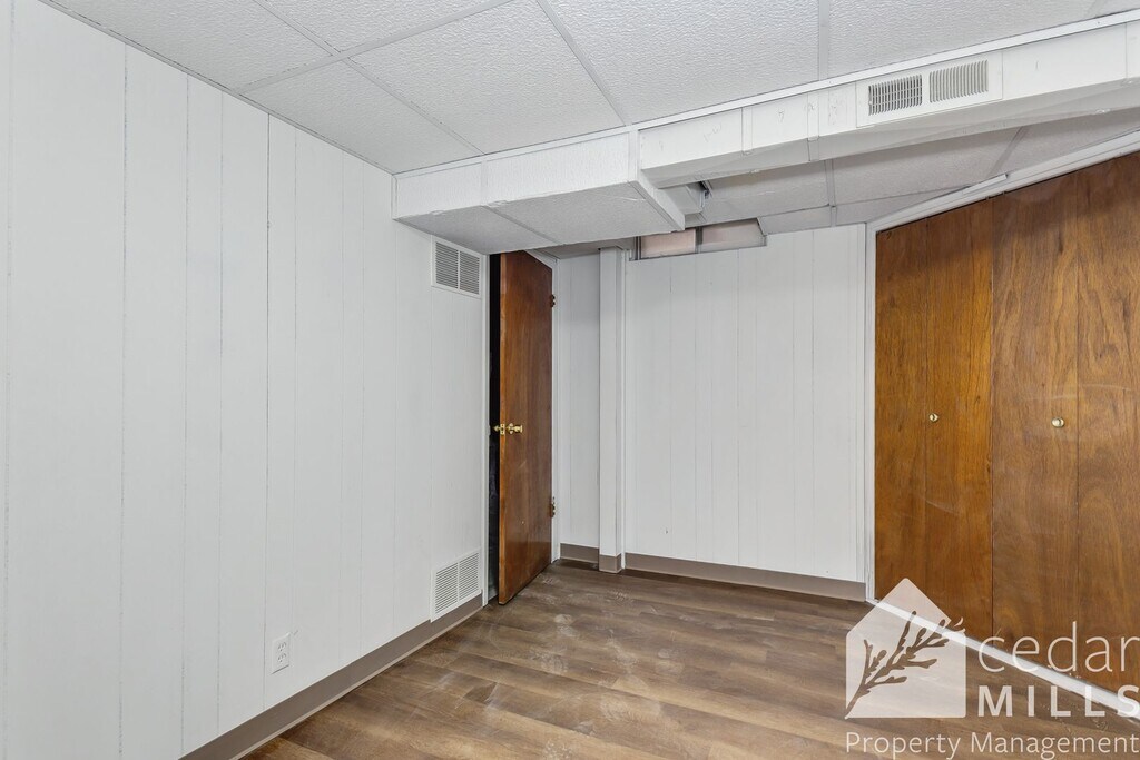 Welcome home to this spacious 3 bedroom ranch that has received several modern upgrades while still maintaining its mid-century charm. Upon entering you will immediately notice the large, picture window that lets in so much light! The living room and the entire house have vinyl plank flooring. The kitchen has been updated with granite counter tops, a new faucet and hexagonal tile backsplash. There is a separate dining area past the kitchen and a closet here with washer and dryer connections. A second living room/den with a lovely brick fireplace finishes this portion of the home. The master has an en suite bathroom with shower, quirky green tile with a vanity to match and rich, gold accents throughout. The hallway bath has had some updates as well with new vanity, flooring and tub. Two more bedrooms complete the upstairs, both with hard floors. There is a small, finished basement with an additional living room and a 4th room to use as storage, office or studio space. Outside there is a large two car garage, fenced back yard and a big wooden deck. Don't hesitate to make this house your home! Rent $1595 Deposit $1595 + $150 move in fee App fee $40 per adult