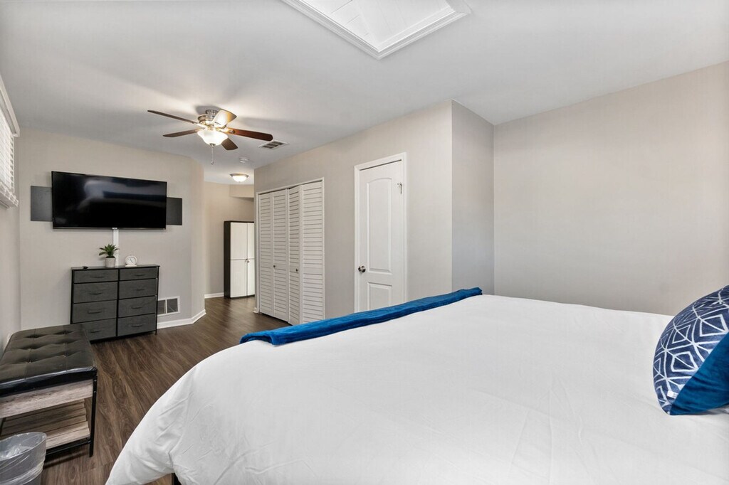 The advertised rate of $14,117/month is the lowest available price, based on a 30 day(s) stay with a move-in date of July 15, 2026. Rates vary depending on the duration of stay, season, and other parameters. For exact pricing and additional pricing components, please visit our website and enter your desired move-in and move-out dates. The rate is applicable when billed upfront; it can be higher if billed in multiple payments. Feel at home in this updated 2250 SF home in the South suburbs, nestled between Midway Airport and Tinley/Orland Park. This home has 4 bedrooms and 2.5 bathrooms. This single-family home features driveway parking and additional street parking, if needed. The kitchen is fully equipped with utensils, pots, pans, and appliances. For children, there is a pack and play sleeper, a stroller, a high chair, and a booster seat. Entertainment options include four LCD televisions with access to Hulu, Disney, and ESPN streaming (English & Spanish), Netflix and Prime Video access (using your own login), up to 300 MBPS internet speed with ethernet hard line available, and Wi-Fi throughout the entire home. The living area has a 55" TV and the bedrooms have 40" TVs. There is also a sound bar in the living room. For fun and games, there are 50+ board games and playing cards available. Premium amenities include an arcade cabinet with 2000 classic games, 10+ cooking spices, 3 types of cooking oils, and air hockey. An air mattress is available. Cards and game options are available. Exterior security cameras are on site. Failure to submit ID prior to check-in will not result in any refunds, and access to the property will not be granted. There is a $250 fine if any loose trash is found inside a garbage bin/can. Renters should report all observed damage within 8 hours of checking in, to avoid liability. Pictures must be sent to establish the extent of observed damage. [SI]