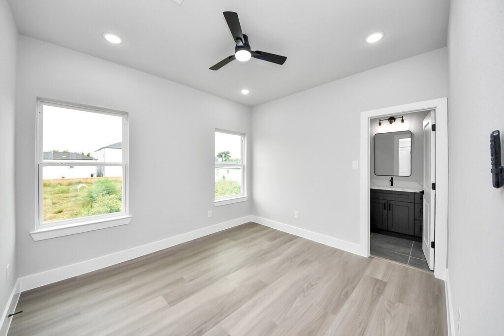 WELCOME TO DEL RIO PLACE — Modern. Urban. Timeless. This expertly crafted 2-story new construction home near the Houston Medical Center offers 2,018 sqft of thoughtfully designed living on a 2,575 sqft lot. Blending clean architectural lines with purposeful function,the open-concept 1st floor features durable LVP flooring,sleek quartz countertops,a full quartz backsplash,& contemporary cabinetry with soft-close hardware. Upstairs,4 spacious bedrooms & 3 full baths include a serene primary suite with a freestanding soaking tub,oversized walk-in shower,expansive closet,& private balcony. Additional highlights include PEX plumbing,stainless steel appliances,a custom wrought iron entry gate,& a private driveway. The fully fenced backyard features fresh sod,French drains,rain gutters,& a spacious covered patio—ideal for entertaining. Located minutes from the Med Center,Hermann Park,Downtown,and the Galleria - this home is where modern design meets timeless location. MLS# 68580610