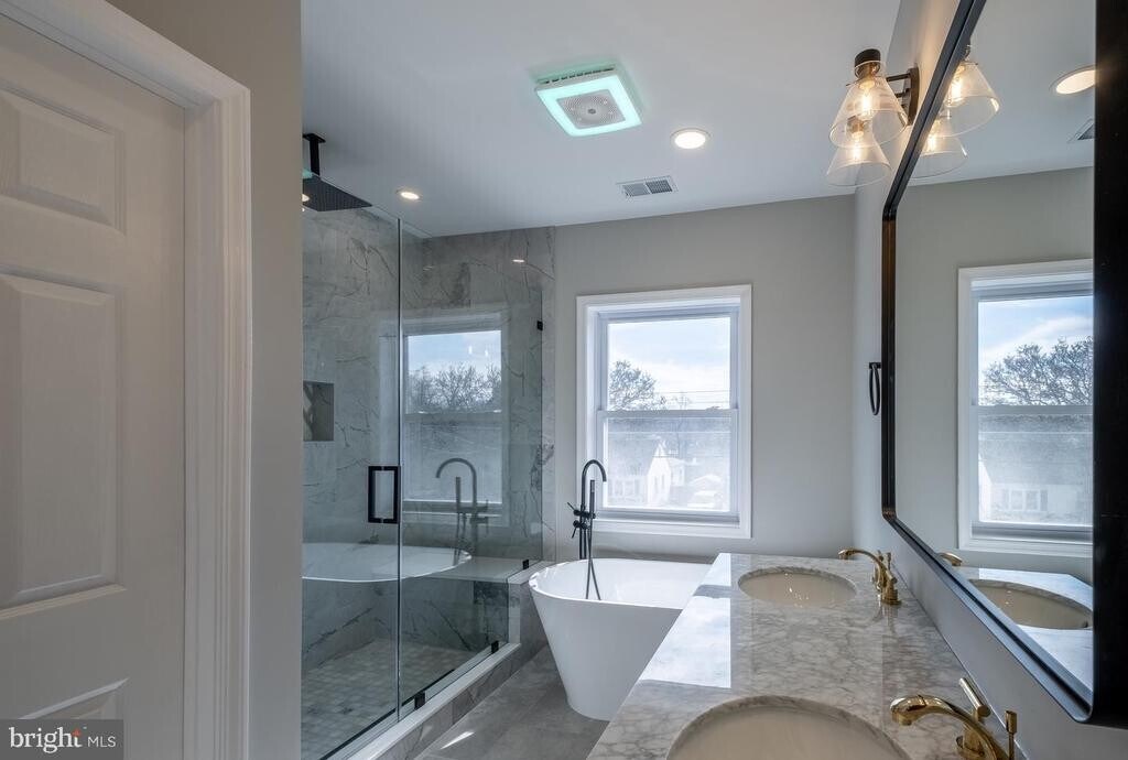 Enjoy this beautifully renovated and thoughtfully expanded Colonial in the desirable West Lawn neighborhood of Falls Church. With 2,756 sq ft across two levels, this spacious home offers 5 bedrooms, 3.5 bathrooms, two primary suites, and a dedicated main level office ideal for comfortable living and working from home. The main level features a bright, open living, dining, and kitchen layout that flows seamlessly to the fenced backyard, creating an easy indoor-outdoor lifestyle. The gourmet kitchen is fully updated with stainless steel appliances, quartz countertops, tile backsplash, pot filler, pantry, and a large center island perfect for gathering. This level also includes hardwood floors, recessed lighting, crown molding, a wood burning brick fireplace, powder room, private office with French doors, and a generously sized main level bedroom with a full bath. Upstairs, the owner’s suite offers vaulted ceilings, a walk-in closet, and a spa style bath with soaking tub, glass shower, and double vanity. Three additional well sized bedrooms, a shared double vanity bathroom, and a full laundry room complete the upper level. Outside, enjoy a large fenced backyard with patio and brick outdoor fireplace, plus an attached carport, extended driveway, and brick storage shed for added convenience. Recent upgrades include a newer roof, HVAC, water heater, plumbing, and electrical systems. Ideally located near Route 50, I-495, and I-66 with quick access to DC, shopping, Mosaic District, INOVA, Seven Corners, and Baileys Crossing. You do not want to miss out!