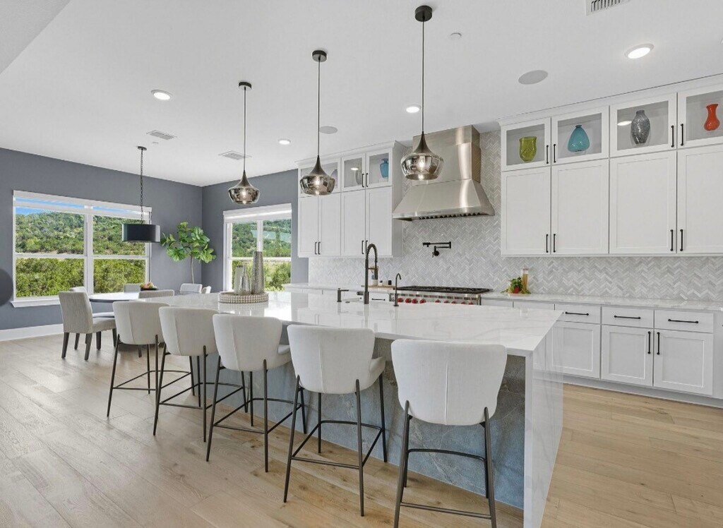Nestled in the exclusive,gated enclave of the highly sought-after Sweetwater community,this stunning 5,003 sq. ft. residence blends timeless elegance with modern functionality. It offers a private office,a dedicated media room,a flexible game/flex room,providing ample space to live,work,and play. Grand,light-filled spaces are enhanced by soaring windows that showcase sweeping greenbelt views,while warm white oak flooring,a striking fireplace,and seamless indoor-outdoor flow create a sophisticated yet welcoming atmosphere perfect for entertaining of any size. The gourmet kitchen is equipped with a Wolf 8-burner range with pot filler,a built-in 60" Thermador refrigerator,quartz countertops,and custom cabinetry designed to discreetly conceal small appliances. A spacious walk-in pantry adds practicality,and the bar,strategically positioned between the elegant dining room and living area,makes entertaining effortless. MLS# 18807307
