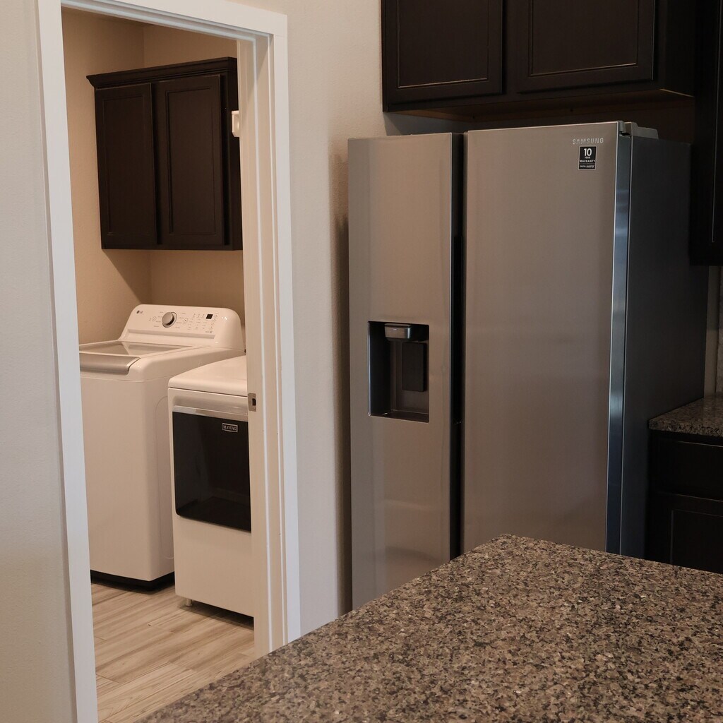 Situated directly across from the newly built Lone Star Trails Elementary School, this beautifully maintained 3-bedroom, 2-bath home offers modern comfort and thoughtful upgrades throughout. The open floor plan features soaring ceilings and elegant crown molding, creating a bright and welcoming living space. Upgrades include granite countertops, a water softener, reverse osmosis system, garbage disposal, and a cozy gas fireplace. The low-maintenance front yard showcases attractive xeriscaping with a brick flowerbed, while the backyard offers grass landscaping with a built-in sprinkler system, a 10’ x 12’ wooden shed, and an extended fence—perfect for outdoor enjoyment. For added convenience, the home includes updated appliances such as a side-by-side refrigerator, washer and dryer, dishwasher, and microwave. Ideally located near Loop 250, the home is just minutes from shopping and dining, and within walking distance of the community park. A newly built school is located across the street without the hassle of school traffic! School drop-off/pick-up is restricted to the opposite side of the campus. This home is the perfect place to settle in and start making memories.