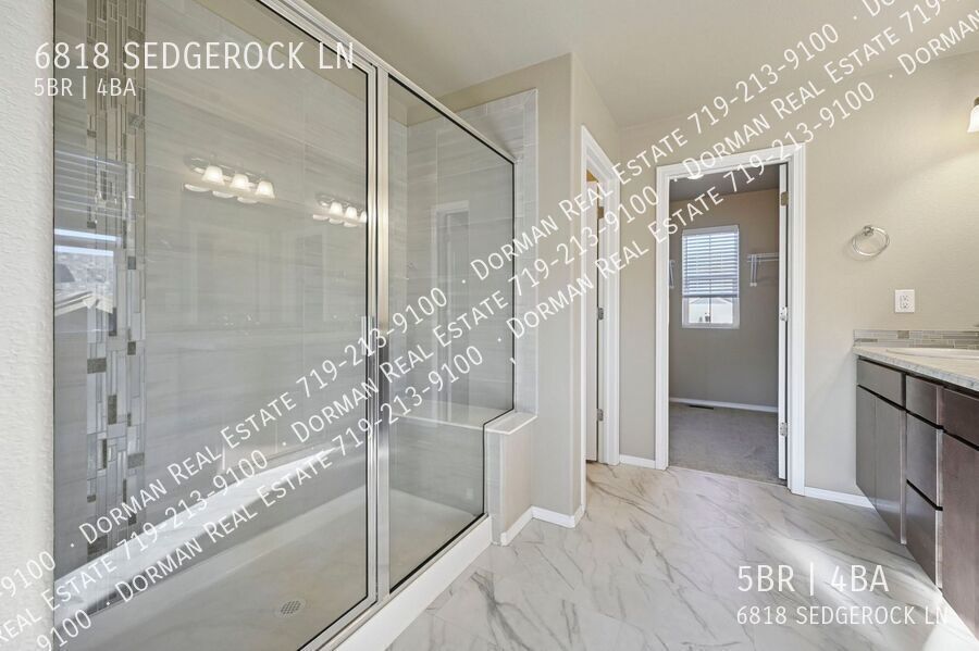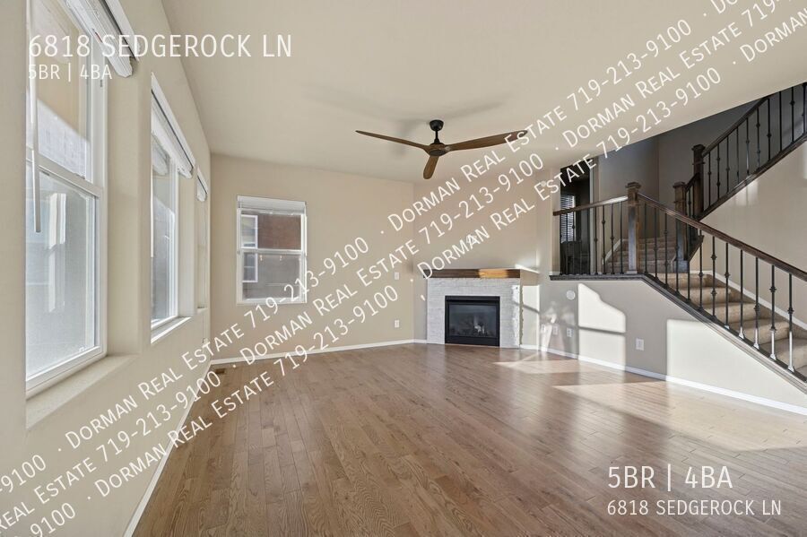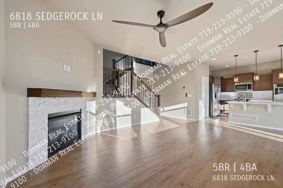 Come and see this beautifully updated 5 bedroom, 3.5 bath home with hardwood flooring on the main level and amazing bathroom upgrades throughout! You'll love the 3-car tandem garage for all your storage needs, the finished basement with junior suite and adjoining full bathroom, the easy to maintain fully fenced backyard space, and the huge front porch to relax and enjoy those Colorado days. The home also features a wet bar in the lower level, complete with wine fridge and storage for your drinkware. With plenty of living space and areas to work and play, you'll love living in this amazing home! Banning Lewis Ranch has a ton of extra neighborhood amenities that you will love, including a pool, gym, rec center, and lots of excellent walking paths for you to enjoy. Located within walking distance to the neighborhood school, 10 minutes to St. Francis Hospital, 20 minutes or less to USAFA and Peterson SFB, and less than 25 minutes to Schriever SFB and Colorado Springs Airport, you'll love living so close to everything. See it before it's gone! Please check out our application handbook by copying and pasting the link below into your web browser