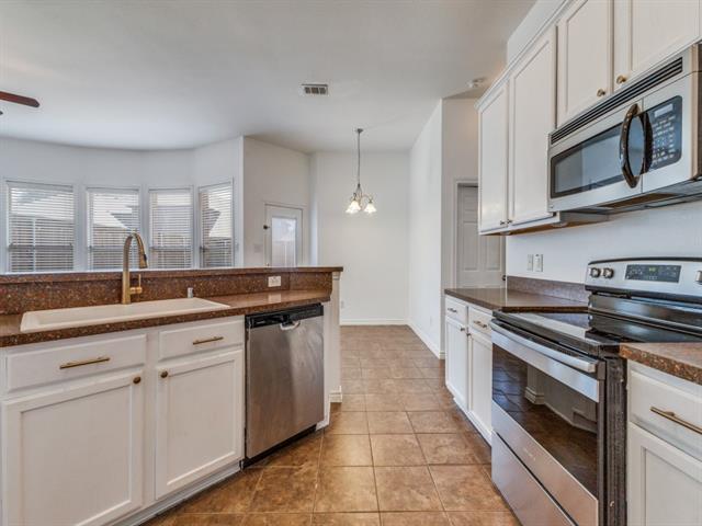 Beautifully updated single-story home in the sought-after Grand Heritage Club! This 3-bedroom, 2-bath, 1,609 sq ft gem offers fresh Ultra Pure White paint, stylish brass hardware and fixtures, a sleek quartz kitchen sink, and stainless steel appliances. The thoughtful layout includes tile flooring in the kitchen, baths, and entry, with cozy carpet in the bedrooms and living areas. Recent upgrades include a new water heater, updated HVAC, an 8-ft board-on-board privacy fence, and wired front entry lighting. The landscaped yard with Bermuda grass, hostas, and Asiatic lilies adds curb appeal and charm. Grand Heritage residents enjoy resort-style amenities—two sparkling pools, a new gym, clubhouse, business center, playgrounds, and a basketball court. Truly move-in ready!