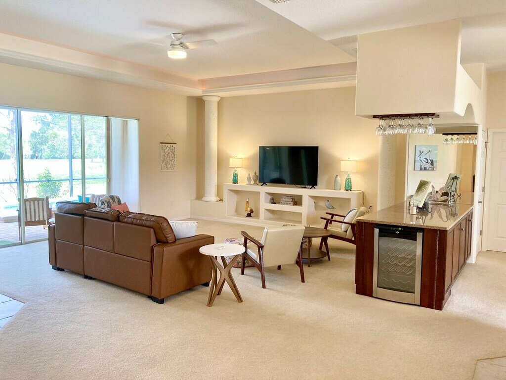 Your Crystal River adventure begins at this charming 4-bedroom house with a patio "cocktail" pool overlooking the golf course. Near our beautiful Kings Bay and the Crystal River, you can swim with the manatees in the cooler months, fish or scallop (seasonally) in the Gulf, or just enjoy our local community with some excellent waterfront restaurants. Great for entertaining with plenty of room for the family. With 1 king bed, 2 queen beds, 1 bunk bed, and 1 full over twin trundle bed, there's plenty of space for all guests. Two of the bedrooms/bathrooms can be closed off to create additional "suites" for privacy. The 3 bathrooms offer both showers and bathtubs for a relaxing stay. In addition, the living room includes a cozy full sofa bed for extra sleeping arrangements. Electric fireplace, wet bar, and indoor/outdoor games as well. We hope you'll enjoy your stay at our lovely home. This home is listed with Airbnb and VRBO as well as Plantation Rentals. Can be booked through our office for longer stays! Short term tax for stays less than 6 months and 1 day is 11%. Contact us for additional information at . Rented March 2026.