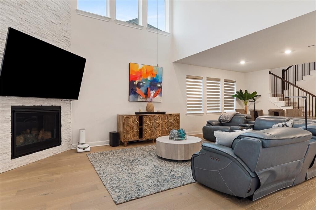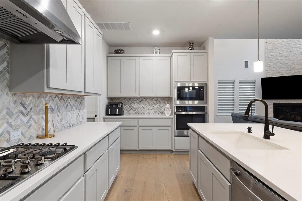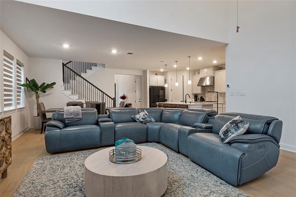 VACANT - IMMEDIATE POSSESSION AVAILABLE! Situated in the highly sought-after Parten Ranch neighborhood, this gorgeous, almost brand-new house provides the ideal combination of elegance and comfort while being close to Austin, Dripping schools, dining options, shopping, and entertainment. Located on a quiet greenbelt-backed 0.224acre property, this 4-bedroom, 3.5-bath home is a genuine beauty. With 4 parking spaces, a separate study, a movie room, and a game room, this house offers plenty of room for work-from-home activities, leisure, and amusement. The stunning gourmet kitchen, which flows smoothly into the dining and living areas, is the focal point of the house. It features stainless steel appliances, white quartz all-round countertops, beautiful contrasting backsplash, twin ovens, a gas burner, and a center island. Open floor plans are ideal for everyday living and events because they create a warm and inviting atmosphere. The great room's eye-catching focal point is a stunning floor-to-ceiling stone fireplace. With its light color bathroom tile and whitw countertops, the large master suite feels opulent and offers a view of the greenbelt. Three further bedrooms with two bathrooms, a game room, and a theater room are all located upstairs. This house offers the ideal ratio of solitude to community, with space for everyone to stretch out. Savor the outdoors on the covered patio, with views of the gorgeous landscaping and spacious rear that are ideal for a pool and play areas. The lovely pool, playground, clubhouse, and walking trails are among the neighborhood attractions, which are just a short stroll away. Don't pass up the chance to call this remarkable property your own and enjoy the best of contemporary living in a quiet, family-friendly Texas Hill Country neighborhood.