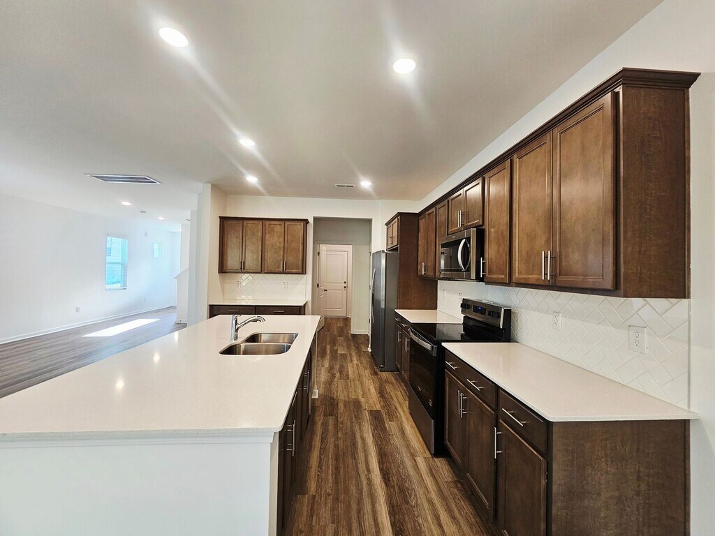 New Constructions built in 2025! It features three bedrooms, two bathrooms, a two-car garage, a covered back porch, stainless steel appliances, granite countertops, and a pantry. The property is situated in a gated community that provides amenities including a swimming pool, clubhouse, playground, and fitness room.