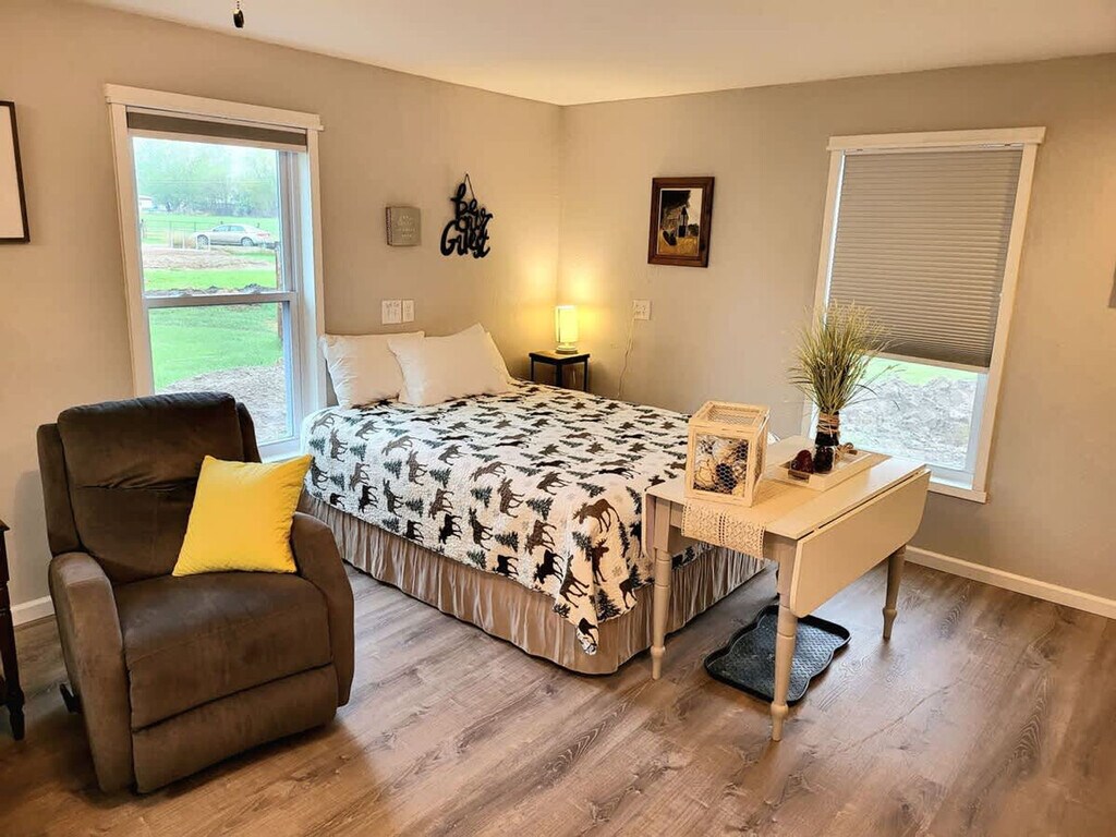 The advertised rate of $2,305/month is the lowest available price, based on a 30 day(s) stay with a move-in date of March 28, 2026. Rates vary depending on the duration of stay, season, and other parameters. For exact pricing and additional pricing components, please visit our website and enter your desired move-in and move-out dates. The rate is applicable when billed upfront; it can be higher if billed in multiple payments. Enjoy a bright and welcoming accessible studio suite just 10 minutes from Helena’s city limits. This thoughtfully designed space offers both comfort and convenience in a peaceful setting. Feel at home in this cozy retreat. This cozy, accessible studio features a spacious open layout with a full-service kitchen, equipped with all the basics for cooking your favorite meals. The bathroom is extra roomy, wheelchair-friendly, and complete with a roll-in shower large enough for a caregiver and chair. Wide doorways and smooth flooring throughout make mobility a breeze. The property is located in the Helena Valley just 10 minutes (6 miles) from town in a very quiet neighborhood with lots of trees. If you love to hear birds singing this is the place for you. Located off of a busy avenue, but due to the location of the apartment noise does not permeate the building. Quiet hours are observed from 9 pm to 7 am. Pets are welcome, but please do not allow your pets on the furniture. A tan pet cover will be on the couch upon arrival, and it should not be removed. Please do not bathe your pet in the apartment. Please pick up after your pet, using the provided poop bags located at the bottom of the ramp. Please do not leave your pet alone in the apartment. If your dog is a shedder, please brush him/her prior to arriving. Please keep your pet on a leash at all times when outside of the apartment. [SI]