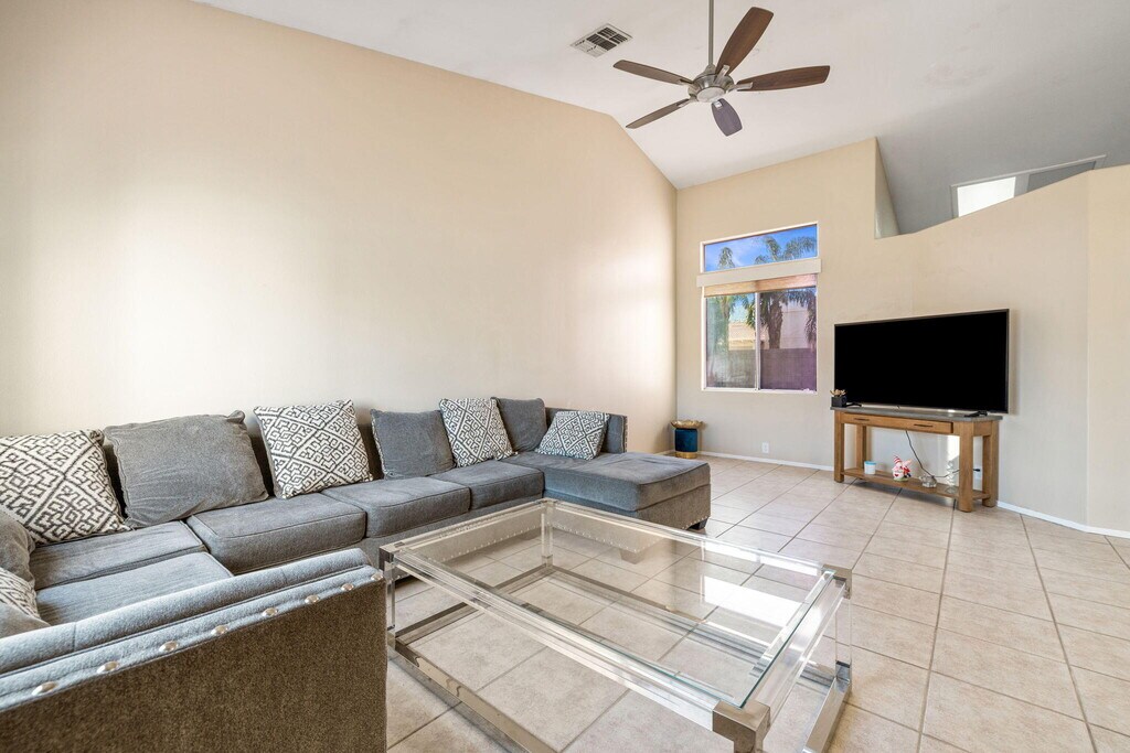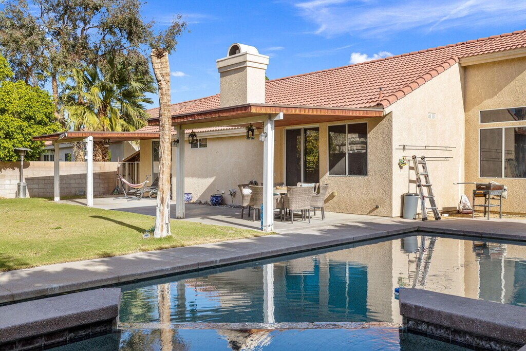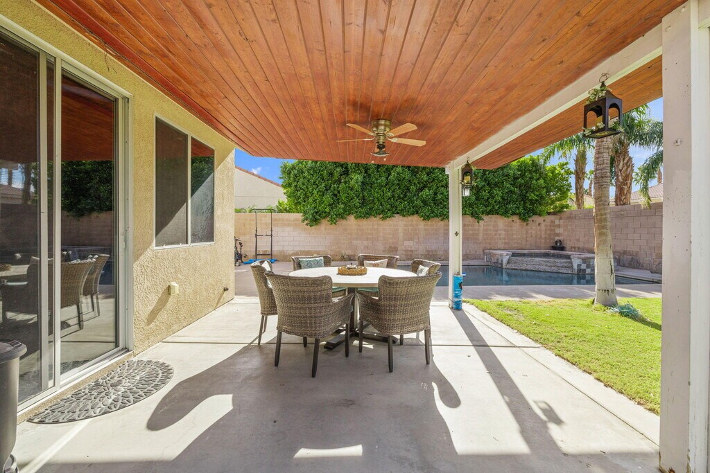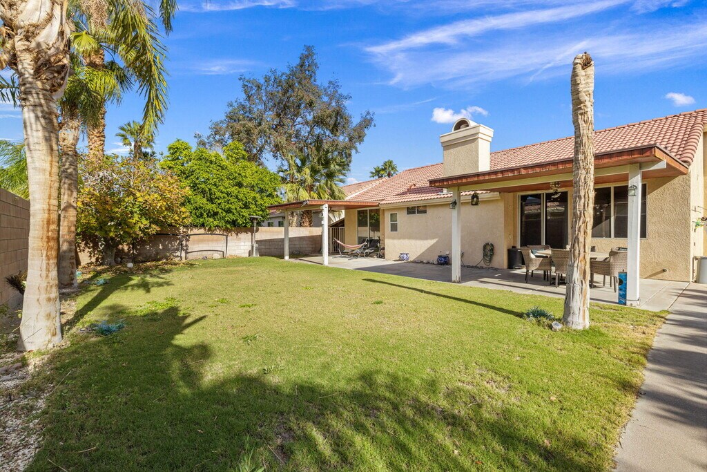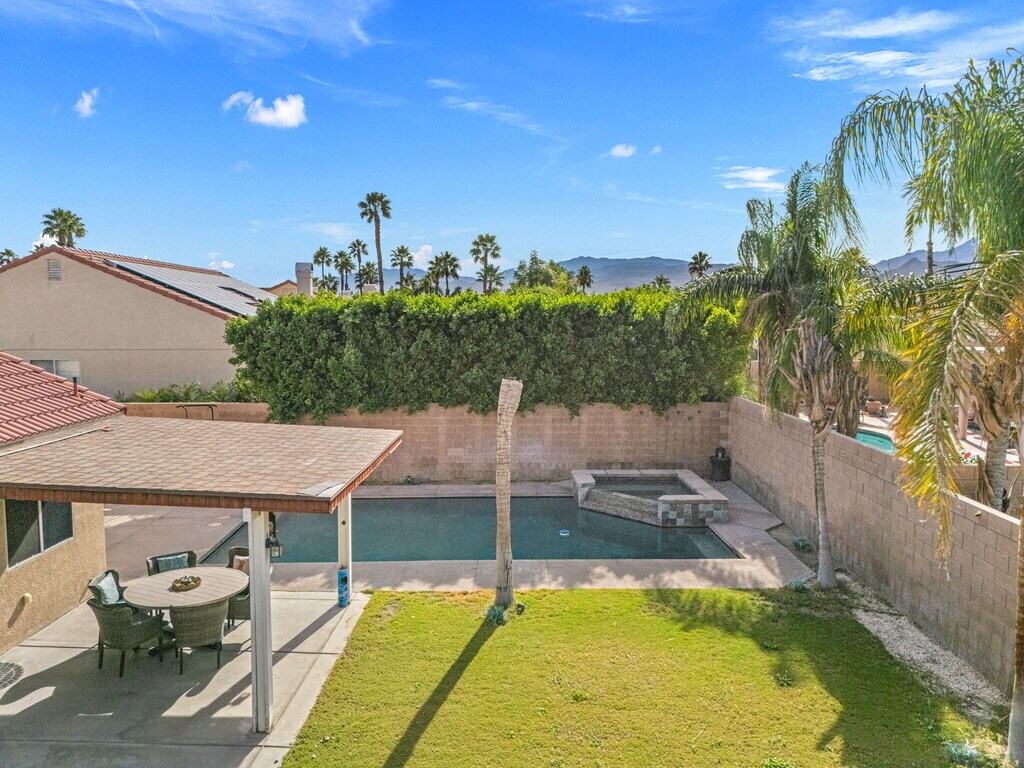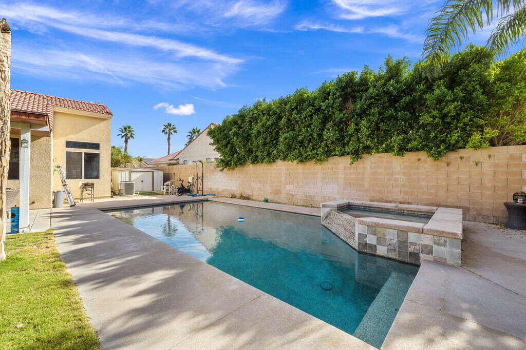 Welcome to this well-maintained 3 bedroom,3 bathroom home located in a desirable Cathedral City neighborhood with convenient access to the I-10 freeway,shopping,dining,and everyday amenities. Offering comfort,space,and privacy,this home is ideal for those seeking both functionality and resort-style outdoor living. The home features tile flooring throughout and a thoughtfully designed layout,including a generous primary suite with a large walk-in closet. The attached 3-car garage provides ample parking and storage. Step outside to a large,private backyard designed for entertaining and relaxation. Enjoy the saltwater Pebble Tec pool and spa,perfect for cooling off on warm desert days or unwinding in the evenings. The front yard offers attractive desert landscaping for easy maintenance and great curb appeal. Major system upgrades include a newer HVAC system and water heater,both replaced in 2019,offering peace of mind and energy efficiency. Located in a quiet,established neighborhood while remaining close to major commuting routes,retail centers,and restaurants,this home combines convenience with comfort. Don't miss the opportunity to lease a pool home with space,upgrades,and an excellent location.
