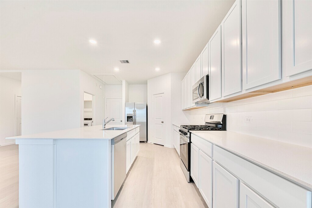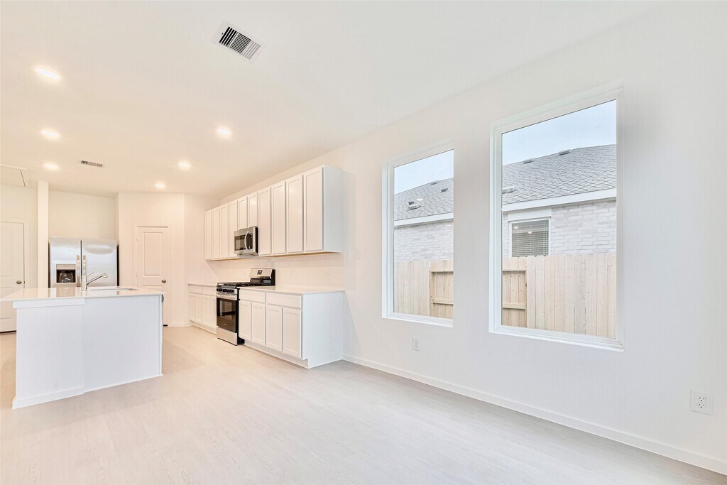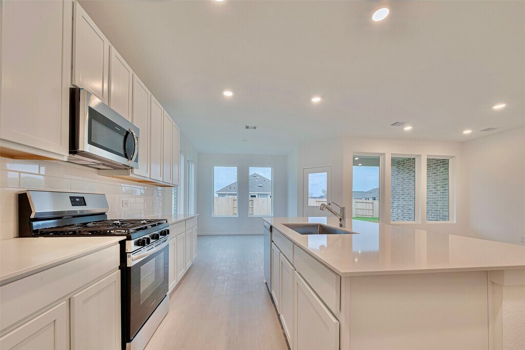 Lots of windows overlooking your backyard!!! Come see this COZY 3 bedrooms - 2 bath NEW home with HIGH CEILINGS,SS appliances,KITCHEN ISLAND,COVERED PATIO,WASHER,DRYER,FRIDGE and big backyard with SPRINKLERS SYSTEM . This home is zoned to new A+ High School in Katy. The layout between the kitchen,nook and family room along with access to the covered patio for year-round outdoor lounging,makes it perfect for easy entertaining,A luxe owner's suite is in a rear of the home and comes complete with an en-suite bathroom and walk-in closet. There are two secondary bedrooms at the front of the home,ideal for KIDS,OFFICE and overnight guests. PICKLEBALL COURT AND COMMUNITY POOL COMING THIS SUMMER MLS# 15458409