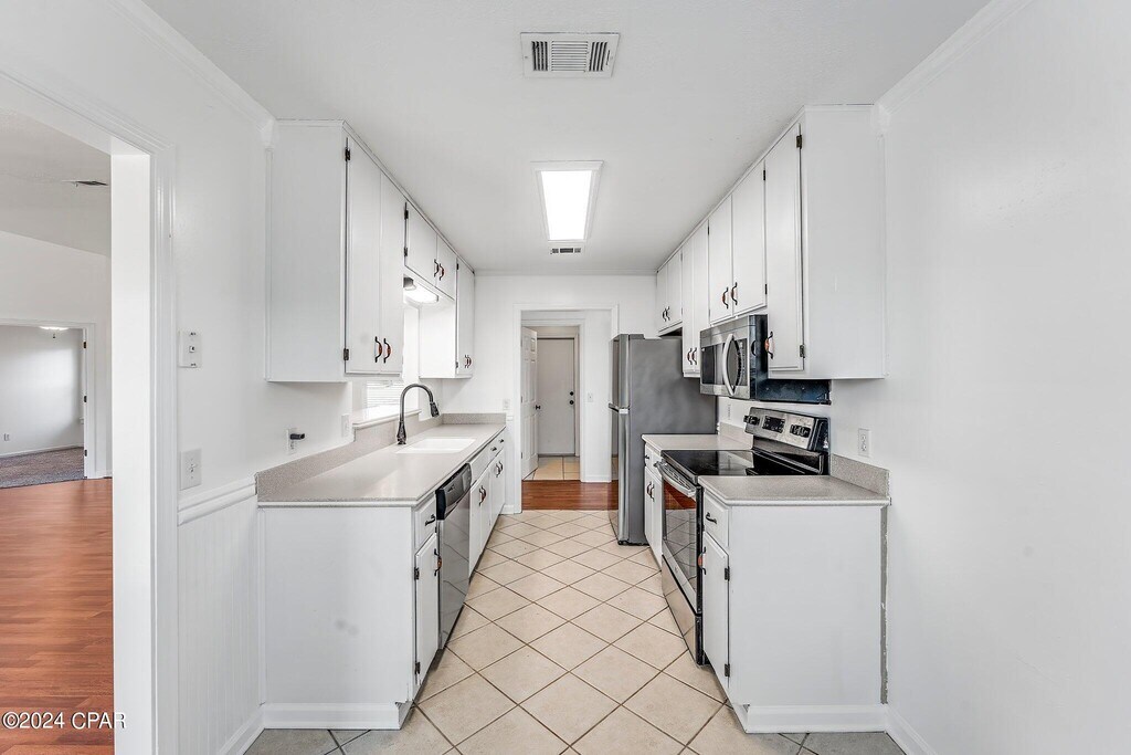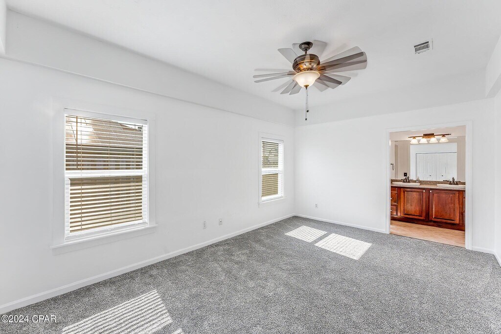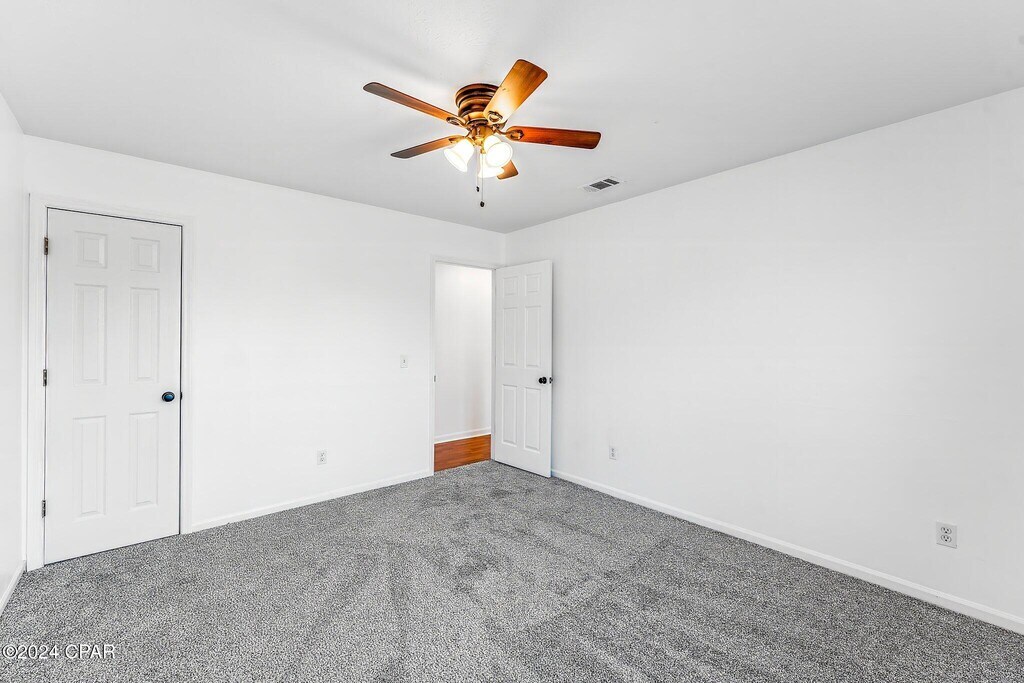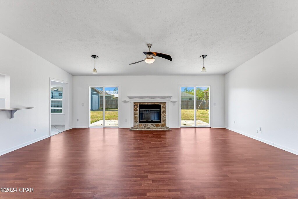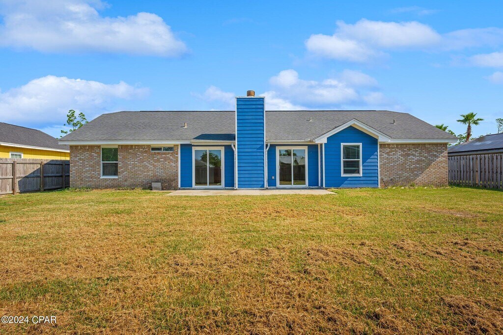 This beautiful four-bedroom, two-bath pet friendly home is conveniently located just minutes from Tyndall Air Force Base. The spacious kitchen comes fully equipped with a stove, refrigerator, dishwasher, and microwave, making meal prep easy and convenient.The home features a desirable split floor plan, offering added privacy for the primary suite. The master bathroom includes double sinks for extra space and functionality. A two-car garage provides ample parking and storage.Enjoy outdoor living in the large, fully fenced backyard, complete with a storage shed for additional space.