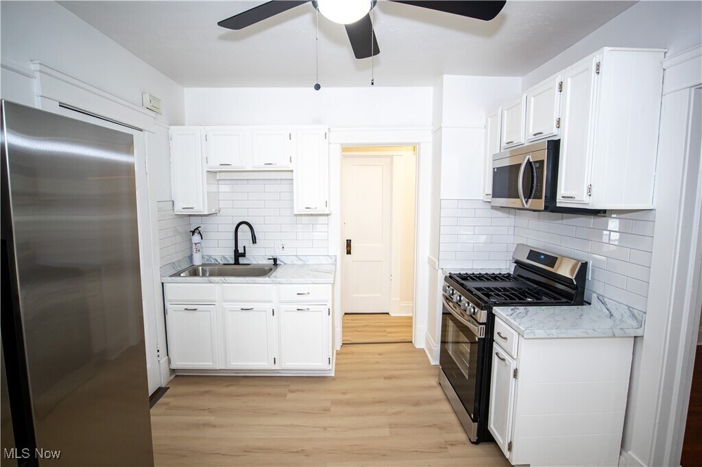Welcome to your new home in this well-maintained duplex! This spacious unit offers 3 bedrooms and 1 full bath,fully remodeled with new kitchen,bathroom and new appliances in the upper unit. Making it perfect for families,roommates,or anyone needing extra space. You'll love the bright and inviting living areas filled with natural light,along with an updated kitchen featuring modern appliances and ample cabinet space. The two comfortable bedrooms are conveniently located on the same floor,while the bonus third bedroom sits on the private third floor a cozy attic-style retreat with charming,sloped ceilings,ideal for a home office,guest room,play area,or peaceful escape. Enjoy added conveniences modern appliances,off-street parking,and a quiet neighborhood close to local amenities,parks,and shops.