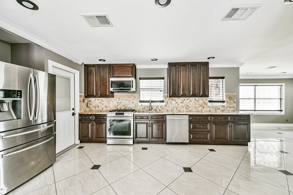 Grace FelefliTastefully updated 3 bedroom home with 2 full bath. NO CARPET. Kitchen features stainless steel appliances, granite countertops and beautiful backsplash. Lots of natural lights. Other features includes ceiling fans in all bedrooms, blinds on all windows, tiled floors in Garage, and large backyard. Refrigerator is included.