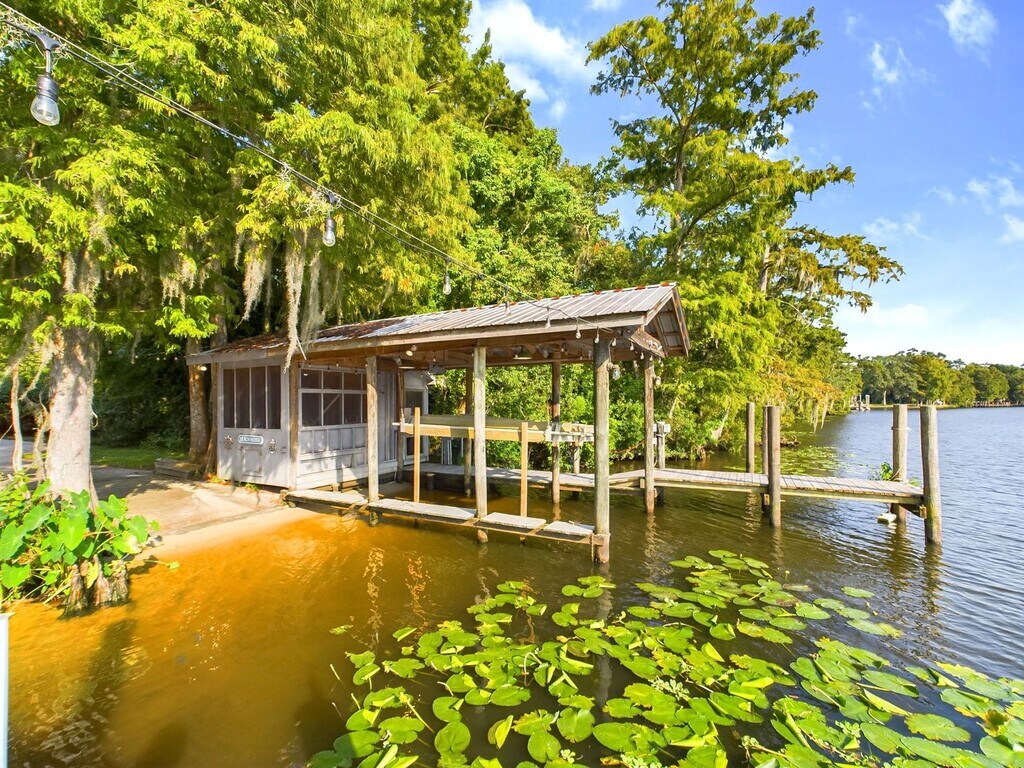 Fully furnished waterfront estate available for 30+ day stays, located on a private one-acre lot in Covington’s Lazy River Estates. This 5-bedroom, 3,648 sq ft home includes a 627 sq ft guest apartment with its own kitchen, ideal for extended living, guests, or a home office. The main residence features hardwood floors, spacious living areas, and expansive porches with scenic river views. Enjoy true riverfront living with a private dock, sand beach, boathouse with shower, and boat/jet ski lift. Direct boat access to riverside dining and just 30 minutes to Lake Pontchartrain. Peaceful, wooded setting just 3 miles from dining and shopping, with easy access to New Orleans and Bay St. Louis. Ideal for those seeking privacy, comfort, and a refined long-term waterfront lifestyle. Virtual Tour: