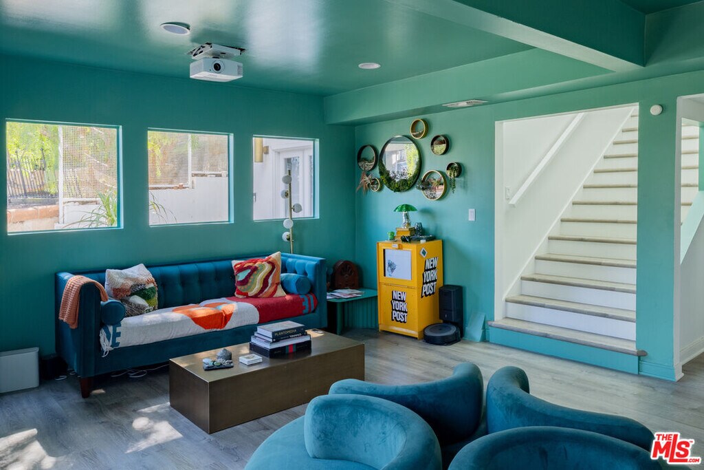 This beautifully light-filled residence in the Hollywood Hills welcomes you with a dramatic skylight atrium that fills the home with natural light. The thoughtfully designed kitchen flows seamlessly into the dining area with vaulted ceilings, the living room, and an expansive balcony showcasing mountain views. The spacious primary suite opens directly to a large, terraced backyard complete with classic Hollywood views. The lower level provides ideal flexibility, perfect for a home office, family room, or guest suite, complete with a private wrap-around balcony and separate entrance. Just moments from Hollywood and Studio City, this home perfectly balances serene hillside living with city convenience. MLS# 26645907