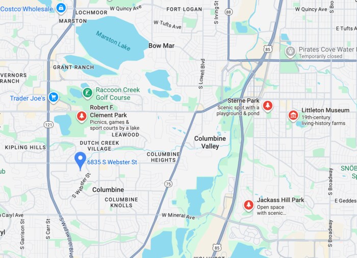 Located in the Terrace At Columbine Neighborhood, 6835 S Webster St is in the 80128 Zip Code of Littleton, CO.