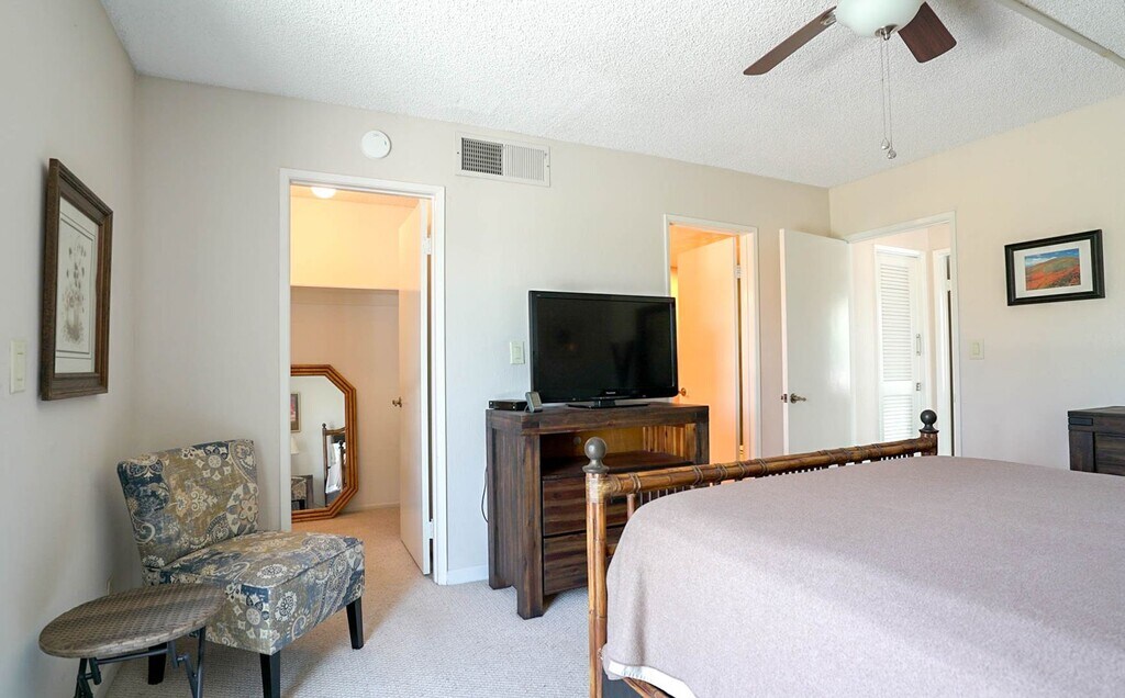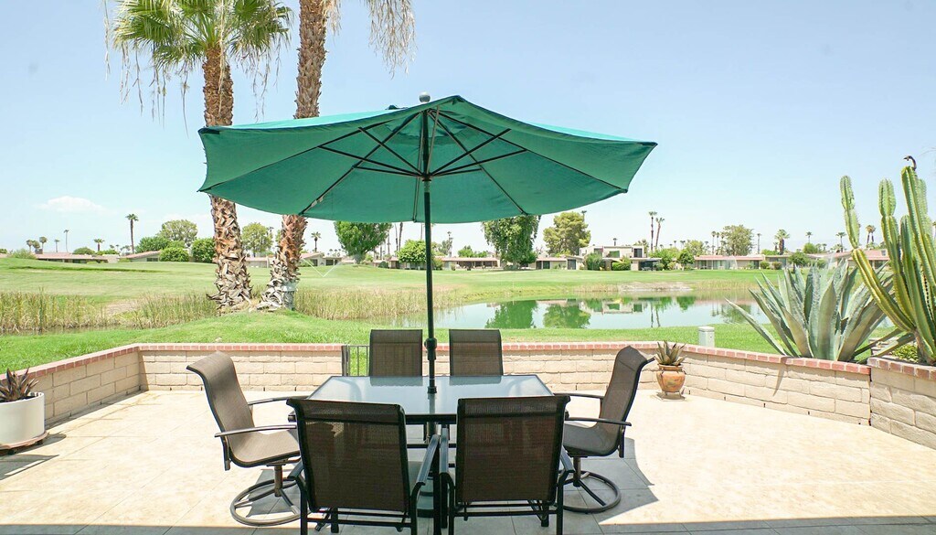 Welcome to your turnkey oasis in the heart of Cathedral City! Nestled within a vibrant golf course community, this beautifully furnished 2-bedroom, 2.5-bath condo offers resort-style living with stunning views of the lake, fairways, and surrounding mountains. Enjoy dual master suites on the main floor, each featuring a dressing area and private bath for ultimate comfort and privacy. The open living and dining areas are ideal for relaxing or entertaining, with large sliding doors that bring in natural light and showcase the breathtaking scenery. The kitchen offers tile countertops and all the essential appliances, including a dishwasher, microwave, and in-unit washer/dryer. Step outside and enjoy access to a sparkling community pool and spa, tennis courts, and an exercise pool, all just steps from your front door. Golf enthusiasts will love being right on the course, while others can simply enjoy the peaceful landscaped surroundings and the convenience of secure card/code access. This multi-level condo includes central air, ample storage, and blinds throughout. Located just off Cathedral Canyon Drive and Paseo Real, you’re minutes from downtown Palm Springs, world-class dining, shopping, and desert attractions. *Please note the garage was converted to the den, no garage parking and this unit has a short driveway, however there is ample guest parking close by. With HOA fees covering building and grounds maintenance, and community amenities galore, this is low-maintenance desert living at its best! Highlights: 2 Primary Suites | 2.5 Baths Lakefront, Golf Course & Mountain Views Fully Furnished (Turnkey) Central A/C | In-Unit Laundry Community Pool, Spa & Tennis Courts Gated Access | Cable TV Included Close to Downtown Palm Springs & Dining Hotspots Live where others vacation — your desert retreat awaits!