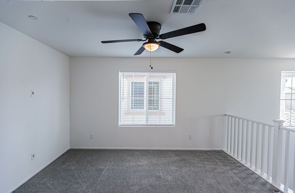 Home comes with solar panels to help you save on energy bill! Introducing a stunning home located in the desirable Skye Hills masterplan community in Las Vegas, NV. with included solar panels to offset some of the electricity usage. This spacious four-bedroom, three-bathroom house boasts modern stainless steel appliances, a covered patio for outdoor entertaining, and the convenience of a bedroom downstairs. Upgraded white cabinets with frost quartz countertops are in the kitchen and bathrooms. The master bedroom has a beautiful view of the mountains and offers a large walk-in shower after a long day. On the other end of the house, you have an unobstructed city view. Enjoy the added security and privacy of living in a gated community and the cost-saving benefits of solar panels included with the home. This home is certified by the Department of Energy as an Energy Home. Convenient to shopping, schools, and highway access.