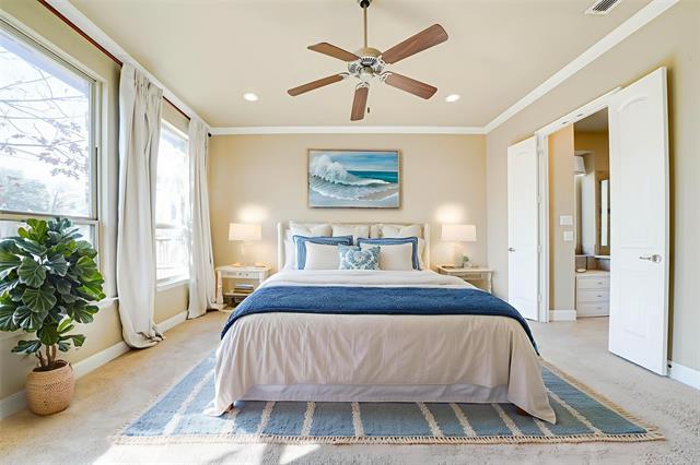Move-In-Ready! New Refrigerator. Welcome to this clean and well-maintained two-story home. Featuring 4 bedrooms and 3.5 bathrooms, this home offers a great layout and modern finishes throughout, embrance with natural light. The modern kitchen boasts SS appliances, a gas stove, granite countertops, a huge pantry, and opens seamlessly to the living room. The primary suite is conveniently located downstairs, complete with a spacious walk-in closet with built-in cabinets and shelving. Upstairs, enjoy a large game room and a media room with a wet bar, along with built-in storage and cabinetry. Two bedrooms share a Jack-and-Jill bathroom, while the fourth bedroom features its own private bath. Built-in speakers provide whole-house audio and camera, many more. Additional highlights include a whole-house water softener, a covered patio, and a low-maintenance backyard with a small grass area. This home offers comfort, space, everything you need is here.