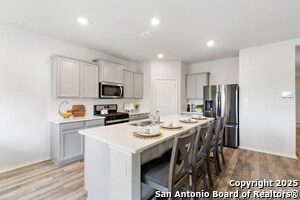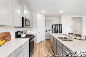Stunning 2022 Home for Lease! This beautifully maintained 3-bedroom, 2-bath home features an open-concept layout perfect for everyday living and entertaining. The spacious primary suite offers dual vanities, a soaking tub, walk-in shower, and a fabulous walk-in closet. Enjoy granite countertops, stainless steel appliances, a gas stove, and luxury vinyl plank (LVP) flooring. Fully Equipped: Home includes essential appliances-washer, dryer, and refrigerator-providing added convenience from day one. Step outside to a covered patio overlooking the large backyard-ideal for relaxing or weekend BBQs. Conveniently located near H-E-B, Walmart, shopping, and restaurants, with quick access to Loop 1604, I-10, I-35, and FM 78. Just minutes from Randolph Air Force Base and downtown Converse.