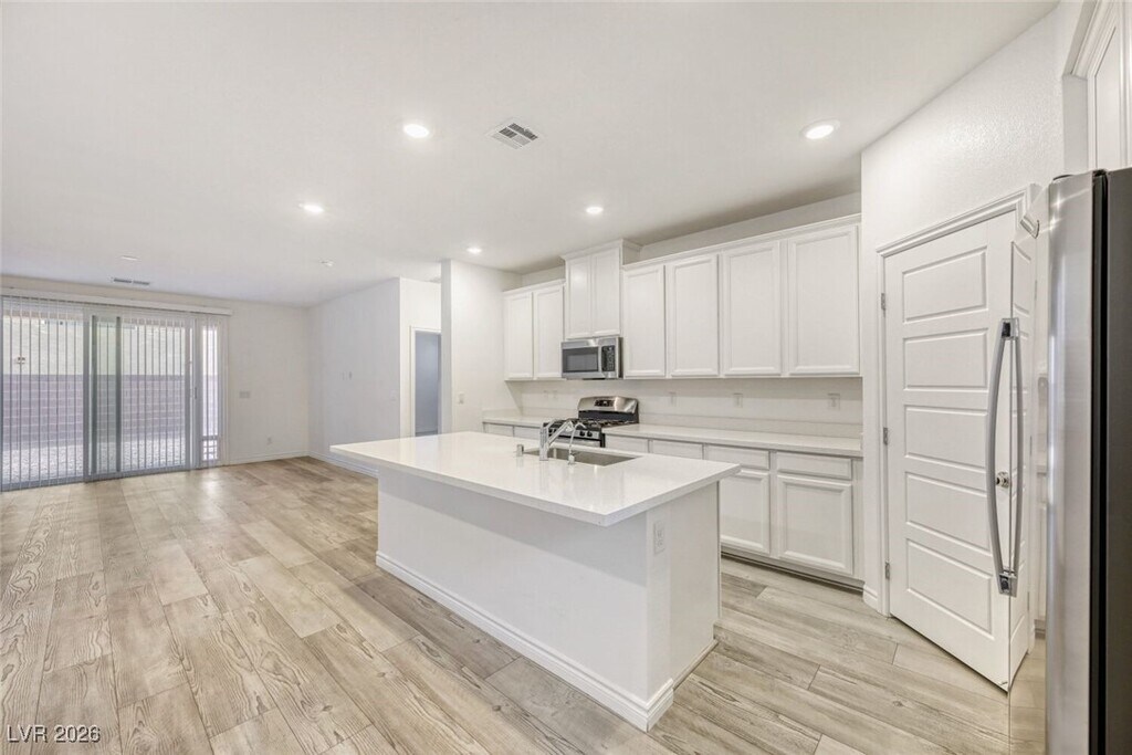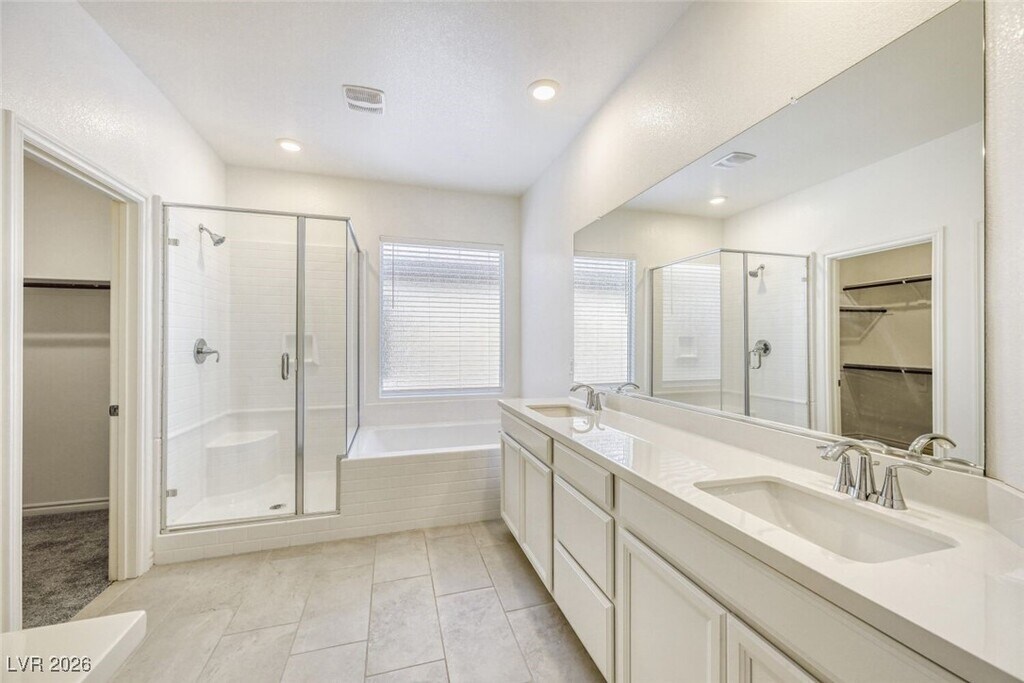 Welcome to this Newly Built 4 bedroom, 3.5-bath home located in Las Vegas with a functional and Modern layout. Features include a two-car attached garage, separate laundry room, and washer and dryer included. The kitchen offers stainless steel appliances, quartz countertops, a large island with breakfast bar and sink, recessed lighting, and a walk-in pantry. Luxury vinyl plank flooring throughout main living areas with carpeted bedrooms. The primary suite includes a walk-in shower, separate soaking tub, and balcony access. Desert landscaping in the front yard for low maintenance. As an added perk, Trash, Sewer and Tenant Portal Fee are included in rent!