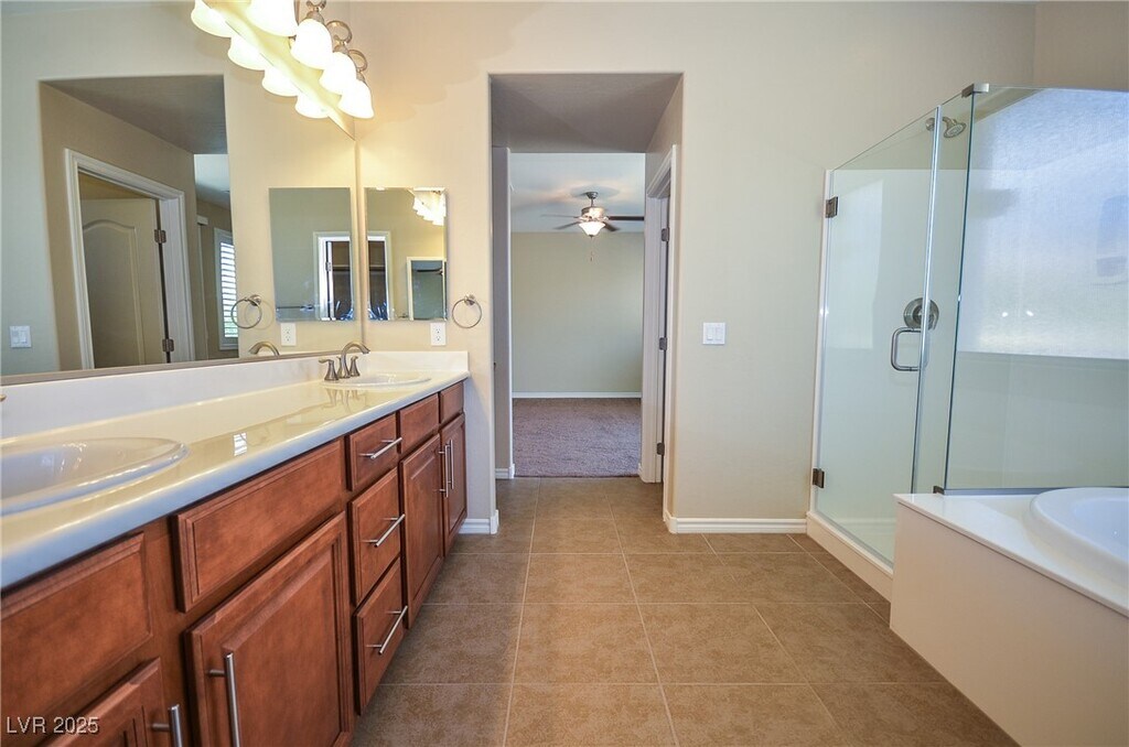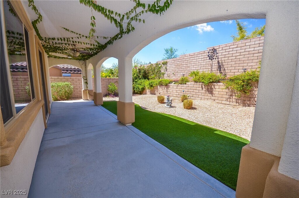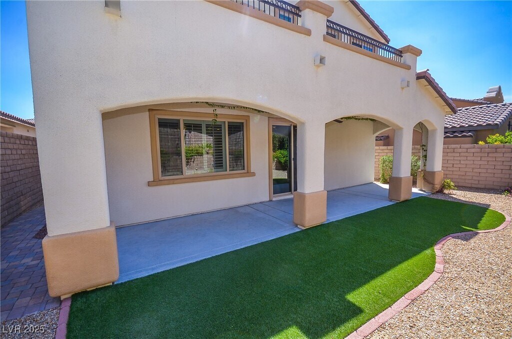 See this 5 bedroom plus loft, almost 3000 sq ft home in the heart of Summerlin (Inside the gated Catalina community)! High ceilings welcome you home! Extensive wood railing gives that open feel in living room and loft area! Home features pavers in driveway and front porch, tile flooring on first floor, plantation shutters throughout, separate laundry room w/sink and cabinets for storage, bedroom downstairs with own bath! Granite countertops, built in double-ovens, huge breakfast bar at the island with cabinets in kitchen. Relaxing backyard with desert landscaping, synthetic grass, large covered patio and pavers in sideyard. Open & airy primary suite with walk-in closet & massive balcony with gorgeous mountain views! Paseo's Park is less than 1/4 mile away! Prime destination for community parks, jogging trails, shopping, retail, dining, and incredible views of stunning Red Rock Canyon. See this one today!