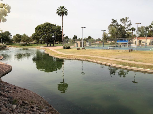 2 Bedroom 2 bath, fully furnished rental in Leisure World, a 45+ Active Adult Community. Available May till October 2026! This home is beautifully furnished, on the lake with stunning views of the sunset from the back patio. Bathrooms recently remodeled with new tile and fixtures. 1 car+ garage with golf cart. Plenty of parking on the oversized driveway. Everything you need plus more just waiting for you. All of this in Leisure world, a 45+ Active Adult Resort Community. We have 3 pools, 2 hot tubs, pickle ball, tennis, golf, billiards, wood shop, fitness center and so much more. Come to Arizona, enjoy being outdoors in warm sunny Arizona. Ask about our summer rates.
