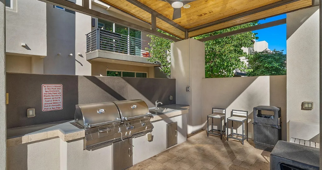 This luxury townhome is currently occupied by a tenant through January 15, 2026. A professional deep cleaning will be completed prior to the February 1, 2026 move-in date. Showings: Property tours are welcome by appointment only, accompanied by the owner, with proper notice provided to the current tenant. Furnishings Included: -TVs mounted 3 rooms and on roof patio -Rooftop patio furniture and fire pit -Dining room table with six chairs -Four barstools at the kitchen island -Bar and coffee table -Primary bedroom: King bed, dresser, and nightstands -One additional bedroom: Queen bed, dresser, nightstand and office desk. Located in a desirable gated community, this partially furnished townhome offers comfort, style, and convenience in the heart of Scottsdale. Experience sophisticated living in this beautifully appointed 4-bedroom, 2- full bathroom, 2 half bathroom, 2 car garage townhome located in one of Scottsdale's premier gated communities. Perfectly situated in the heart of the city near Papago Mountain, this residence offers both convenience and elegance just minutes from world-class shopping, fine dining, and vibrant entertainment in Old Town. 10 minutes from Sky Harbor Airport, Phoenix, Tempe, and Mesa. Step inside to discover a modern open-concept floor plan featuring high ceilings, designer finishes, and abundant natural light. The gourmet kitchen boasts premium stainless-steel appliances, quartz countertops, and a large center island, ideal for casual dining or entertaining. The spacious living area flows seamlessly to a private patio or balcony, creating the perfect indoor-outdoor retreat. Each bedroom is thoughtfully designed for comfort and privacy, with ensuite bathrooms and generous closet space. The primary suite is a true sanctuary, offering a master bathroom with dual vanities and a walk in shower. An entertainer's dream, the private rooftop deck showcases breathtaking panoramic views of Camelback Mountain, Mummy Mountain, the McDowells, and the Papago a stunning backdrop for sunset gatherings or peaceful morning coffee. Enjoy resort-style amenities, including a heated community pool, fitness center, and beautifully landscaped grounds all within a secure, gated environment. Private patio deck on first floor with street access gate. Easy access to major freeways, golf courses, and hiking trails, this home combines the best of Scottsdale luxury and lifestyle. Lease Details: -Lease Duration: 12 months -Pet Policy: Pets allowed. $250 non-refundable pet fee per year -Smoking Policy: No smoking on the property -Subleasing: Not permitted -HOA Rules: HOA rules apply Modern elegance, iconic views, and unmatched comfort welcome home. Lease Terms: HOA Fees: Covered by owner (includes garbage service). Utilities: Tenant responsible for gas, electric, and water. Deposit & Rent: $1500 security deposit due at signing to secure unit. Pets: Up to 2 small dogs allowed. Smoking: No smoking allowed anywhere on the property. Convenient, worry-free garbage service included. Tenant pays only basic utilities, keeping monthly costs predictable.
