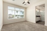 Stylish 3-story townhome in a gated South Scottsdale community with pool and fitness center! Prime location near the Botanical Gardens,Phoenix Zoo,canal path,and minutes from downtown Scottsdale,Arcadia,and Tempe. The first level offers a 2-car garage,bonus room,powder bath,and private gated patio. The main level features 10' ceilings,open living and dining,and a modern kitchen with quartz counters,island,shaker cabinets,gas range,and GE Profile appliances. A large balcony extends the living space. Upstairs,find two guest rooms,a guest bath,and an owner's suite with walk-in closet and spa-style bath. Neutral paint,designer tile,tankless water heater,Wi-Fi thermostats,and a rooftop deck with 360° views complete this home!