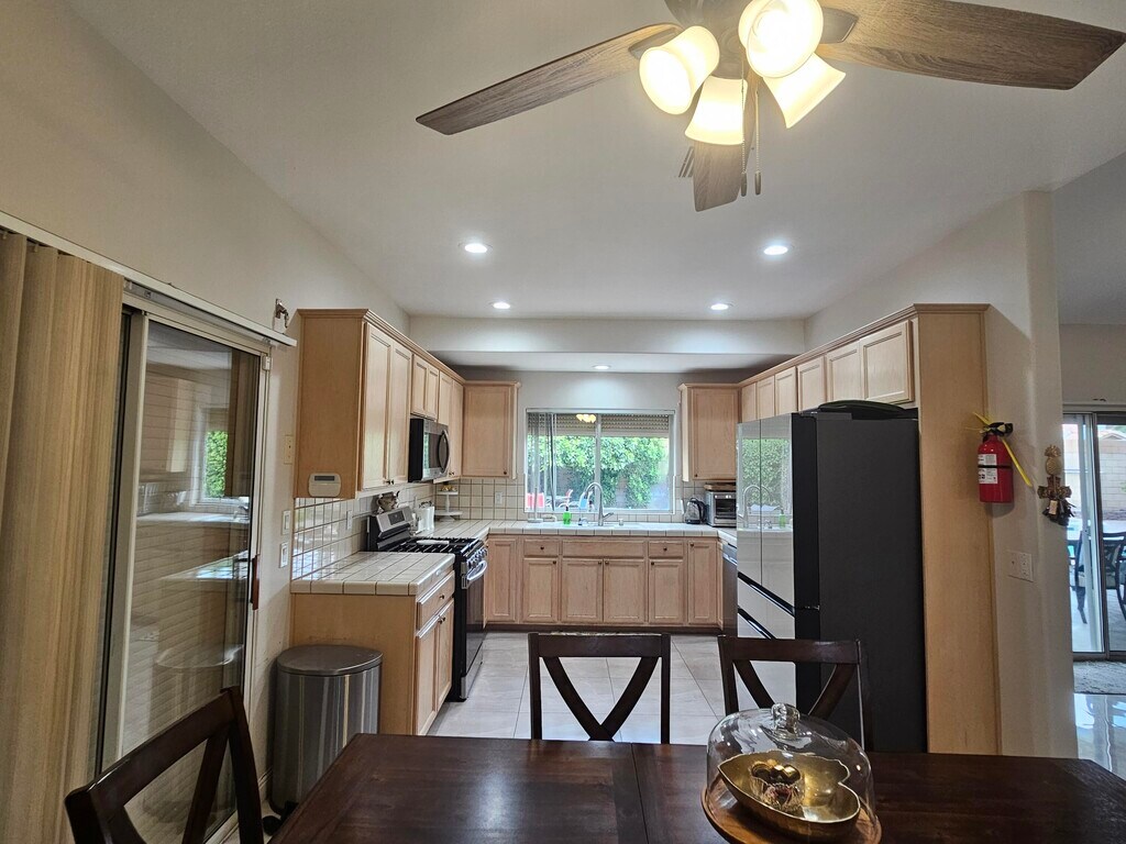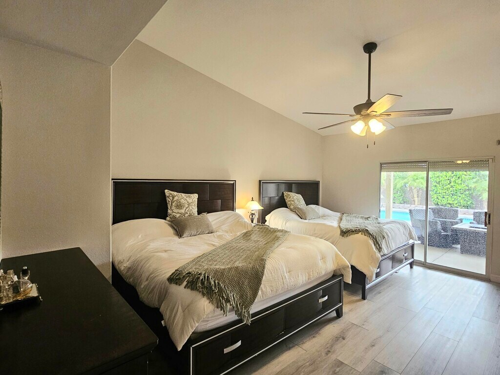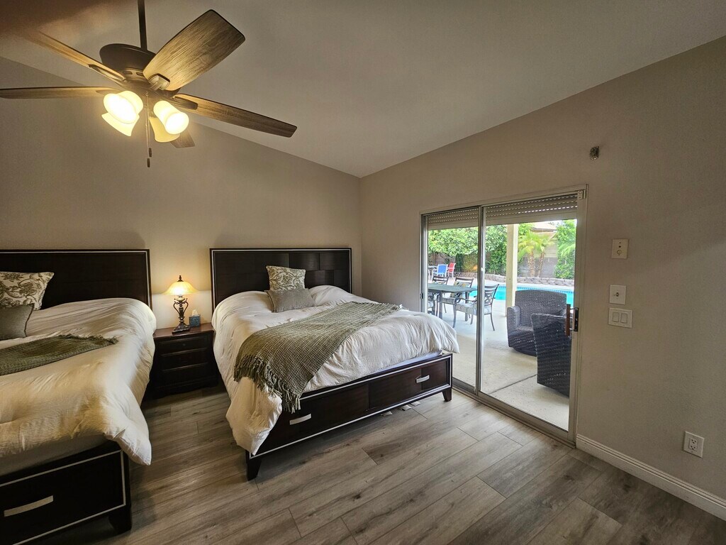 Spacious 4-Bedroom Home with Pool,Spa & RV Parking Prime Location Available for 6 month minimum lease,this beautifully remodeled 4-bedroom,2.5-bath residence offers nearly 2,200 sq. ft. of stylish living on a generous 9,100+ sq. ft. lot. Designed for both comfort and entertaining,the home blends modern finishes with timeless sophistication. Key Features: 4 spacious bedrooms with large closets 2.5 updated bathrooms,each with walk-in showers; the primary suite also features a luxurious soaking tub Vaulted ceilings that enhance natural light and openness Elegant marble tile flooring in main living areas and sleek gray laminate in bedrooms Updated kitchen with dining nook + separate formal dining room Energy-efficient solar panels Resort-style backyard with saltwater pool & spa,outdoor shower,covered patio,outdoor kitchen,and fruit trees 3-car garage with mini-split and built-in storage cabinets,plus RV parking Laundry room with washer/dryer Metal solar shades on all windows and sliders,for privacy and energy savings Lease Details: Offered furnished at $4,670/month. This home is perfect for those who love to entertain,relax in a private retreat,or simply enjoy the best of indoor-outdoor living. Move-in ready and waiting for you!