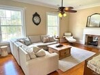 Nestled in the heart of the Milton Historic District,this beautifully restored,fully furnished Circa 1900 Colonial—known as the Gainer/Parker House—is truly one-of-a-kind. Just a short stroll to the charming River Walk,downtown shops,and the scenic Blackwater River,this historically recognized gem is also featured on Milton’s Historic Walking Tour. Sitting on a rare .91-acre parcel in the downtown area,this 10-room,3 bedroom / 3 bath,2-story home (approx. 2,972 sq ft) seamlessly blends historic character with modern comfort. A stunning honey-colored staircase serves as the architectural centerpiece,complemented by 12-foot ceilings,crown molding,wide baseboards,and beautiful hardwood & ceramic tile flooring throughout. The living and dining rooms share a charming two-sided fireplace (cosmetic only),while the parlor boasts floor-to-ceiling windows and a garden-view sitting alcove. Two main-level bedrooms offer convenience,and the upstairs master loft includes French doors opening to a 24’ x 26’ open deck—perfect for enjoying picturesque neighborhood views. The luxurious master bath features a soaking tub,and separate tile shower. The updated kitchen wing provides all the modern conveniences—solid oak cabinetry,stainless steel appliances,island breakfast bar with double deep sink,and custom lighting. A bay-window reading nook and access to both porches complete the space. This home radiates character,craftsmanship,and history—something you simply can’t recreate. If you’re searching for a home that’s truly unlike any other,this one is a must-see!