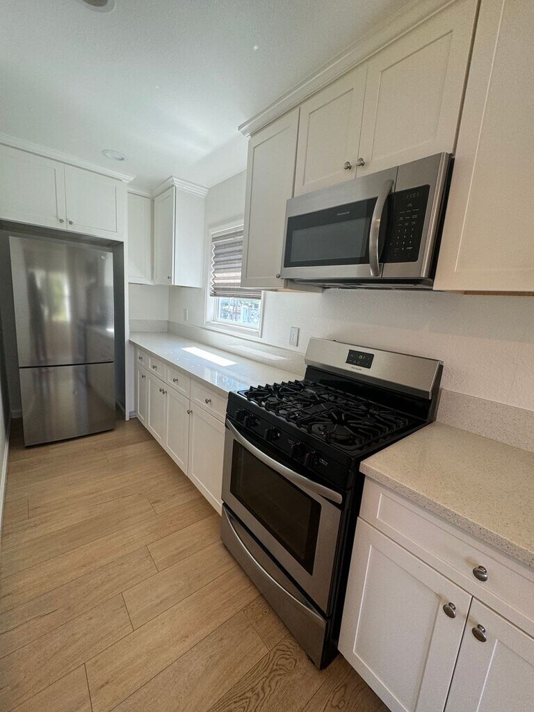Lovely home with many modern upgrades and finishes. Freshly painted, light oak vinyl plank flooring, quartz countertops, stainless steel appliances, white shaker style kitchen cabinets in galley style kitchen open to family room, updated bathrooms, 2-car garage and many more. Great view lot with fruit trees and covered patio to relax. Washer & Dryer included. Monthly landscaping service included. Tenants pay all other utilities. No showings until October 1st. Please call our office to schedule. Well behaved pets (max 2) will be considered with pet deposit. Schools: Foster Elementary, Lewis Middle School and Patrick Henry High School.