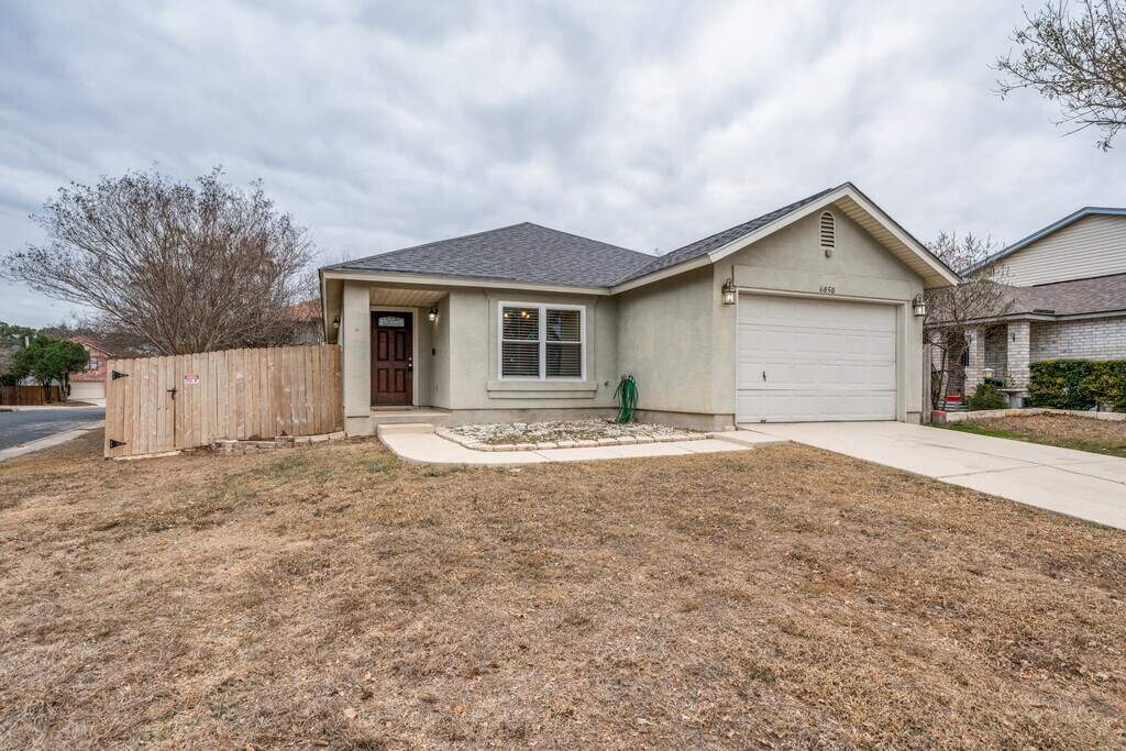 Welcome Home - Spacious 3-Bedroom Single-Family Rental in Schertz Nestled on the vibrant Northeast Side of Schertz, this thoughtfully maintained 3-bedroom, 2-bath single-family home offers 1,447 square feet of comfortable living space, modern finishes, and a private yard ideal for everyday living and weekend entertaining. Built in 2010, the home blends contemporary comfort with practical design, making it a great option for families, professionals, or anyone seeking a well-appointed rental in a convenient location. Interior Features & Layout Step inside to discover high ceilings and an open flow that enhances natural light and space. The updated interior features a fully equipped kitchen with stainless steel appliances and a dishwasher, adjacent to a separate dining area perfect for family meals or hosting friends. Flooring combines easy-care tile in common areas with warm carpeting in the bedrooms. The primary bedroom includes a spacious walk-in closet, and both bathrooms are designed for comfort and functionality. Comfort & Convenience This home is designed for everyday ease: central air conditioning keeps the interior comfortable year-round, and in-unit laundry adds practical convenience. The property is offered unfurnished, allowing you to personalize the interior to your style. A two-car garage provides secure parking and additional storage options. Outdoor Living & Yard Enjoy a fenced backyard that delivers privacy and a safe play area for children or pets. The pleasant outdoor space features a well-kept lawn, feature stepping stones, and large shade trees that create a cool, relaxing atmosphere on warm afternoons. The yard layout invites casual outdoor dining, gardening, or quiet relaxation. Location & Lifestyle Benefits Situated in Schertz near retail centers and department stores on the Northeast Side, this home offers convenient access to everyday shopping, dining, and services. The neighborhood atmosphere is residential and family-friendly, making it easy to balance suburban calm with nearby amenities.