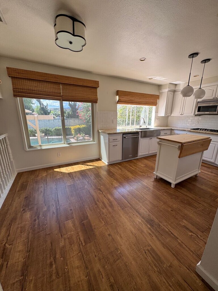 Welcome to this beautifully maintained home in Thousand Oaks, filled with abundant natural light that creates a bright, airy atmosphere throughout. Thoughtfully updated fixtures enhance the home’s modern appeal, while wood-like flooring and tile run seamlessly throughout, offering both style and durability. The main living room features a cozy fireplace, creating the perfect focal point for relaxing evenings and adding warmth and charm to the space. The kitchen is designed for both everyday living and entertaining, featuring stainless steel appliances, ample cabinetry, and a clean, updated look that flows effortlessly into the surrounding living areas. Step outside to your own private backyard retreat. The outdoor space is ideal for relaxing or hosting, complete with a sparkling pool and spa, a safety fence for added peace of mind, and a cozy fire pit perfect for enjoying evenings under the stars. Conveniently located near local favorites like Conejo Creek North Park and Wildwood Regional Park, you’ll have easy access to scenic trails, open space, and outdoor recreation. The home is also situated within the highly regarded Conejo Valley Unified School District, known for its excellent schools and strong community feel. Additional features include a dedicated laundry room for convenience, a spacious 3-car garage, and ample driveway parking to accommodate guests and multiple vehicles with ease. This home offers the perfect blend of comfort, functionality, and indoor-outdoor California living in one of Thousand Oaks’ most desirable areas.
