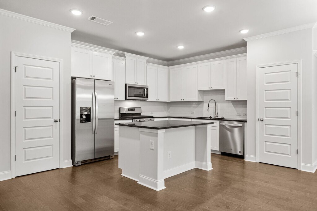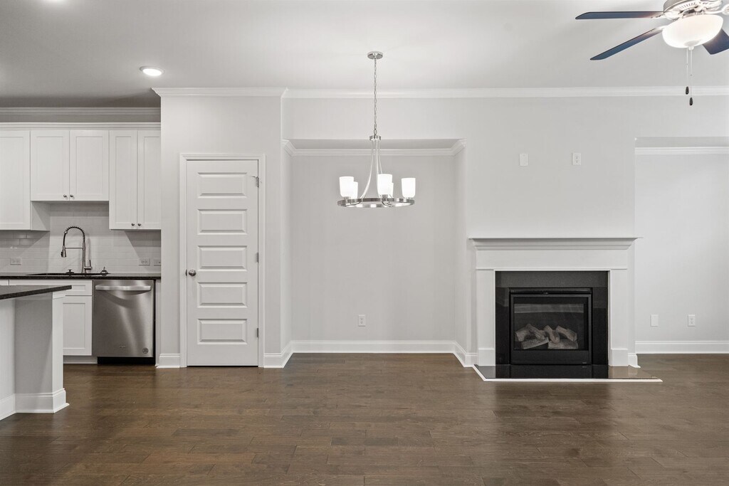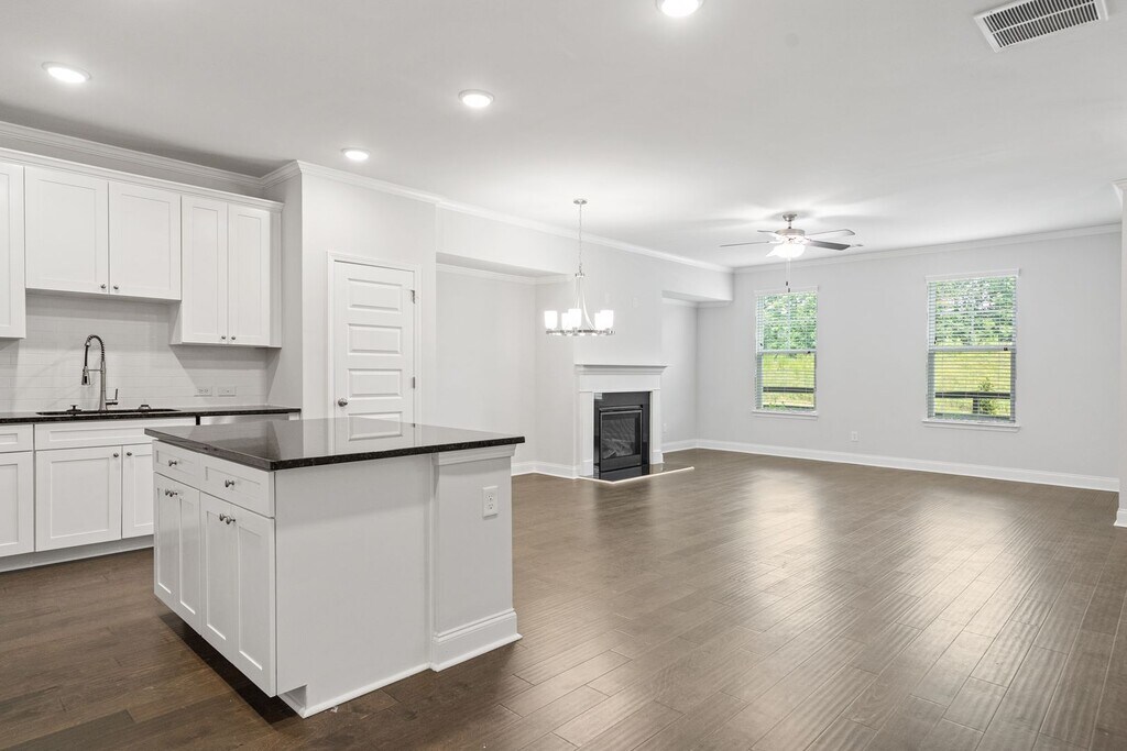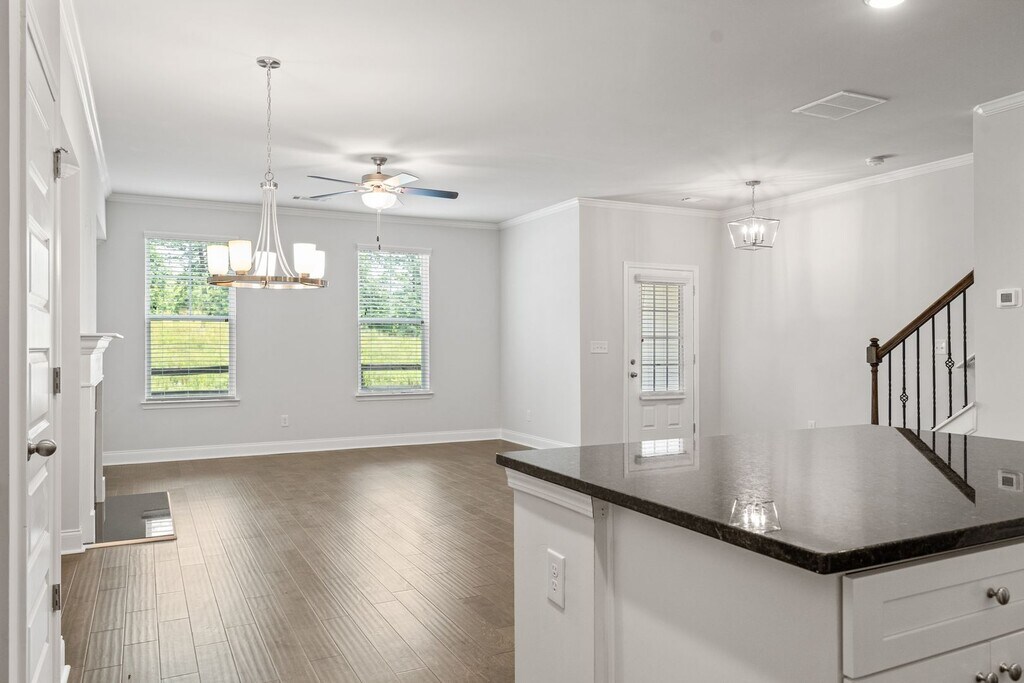 This beautiful townhome features an open floor plan with high ceilings and hardwood flooring throughout the main living areas. The kitchen includes designer wood cabinetry with crown molding, granite countertops, stainless steel appliances, tile backsplash, and a spacious walk-in pantry. A bedroom on the main level adds extra convenience. Upstairs offers a versatile loft space and a stunning primary suite with crown molding, a tray ceiling, tiled bath floors, and a relaxing garden soaking tub. Enjoy peaceful natural views from the back of the home and stylish finishes throughout. Ready to view? Ready to apply?