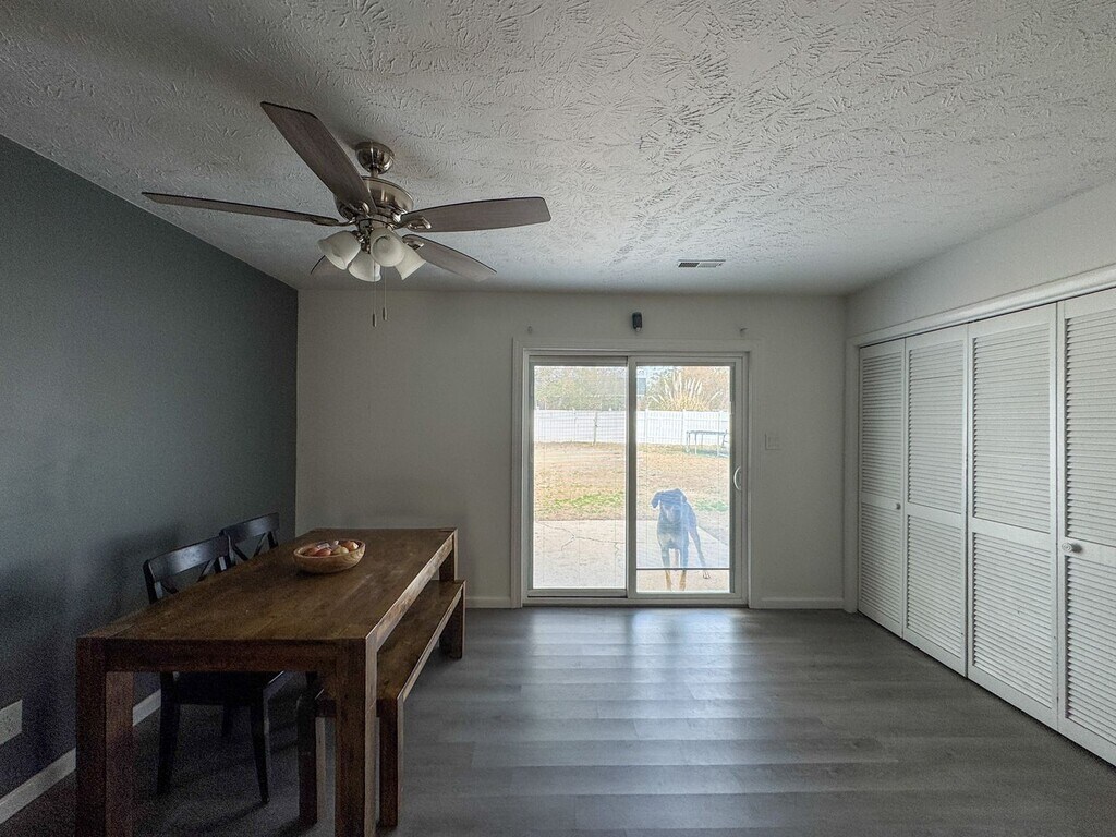 This charming 3-bedroom, 2-bathroom home boasts a kitchen equipped with stainless steel appliances and features a convenient breakfast bar. The open floor plan and passthrough in the kitchen allows for easy flow from the eat-in kitchen to the living area. The primary bedroom is complete with an en suite bathroom for added privacy and convenience. Step outside to find a fenced backyard, offering a secure space for outdoor activities. With no carpet throughout the home, cleaning is a breeze. No smoking. Pets are negotiable with a $250 nonrefundable fee for the first pet and $150 for any additional.