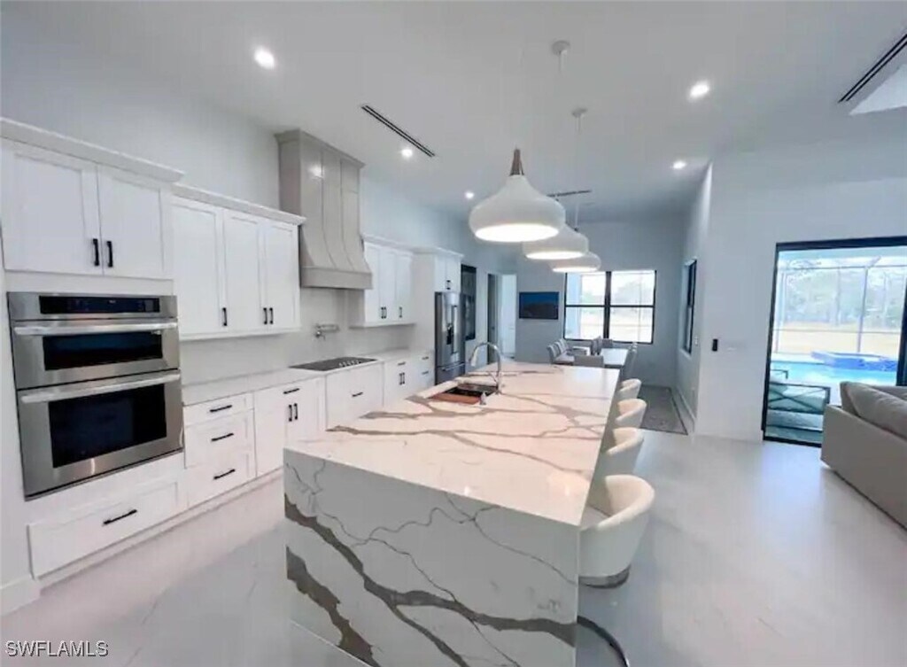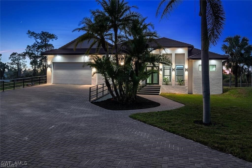 Beautiful NEW CONSTRUCTION home available for annual or seasonal rental in Golden Gate Estates! Sitting on 2.5 acres and fully furnished,this 4-bedroom plus DEN,3.5-bath residence offers luxury,privacy,and the true Florida lifestyle. The property features a stunning pool and spa,a large screened lanai,and a full outdoor kitchen,perfect for entertaining or relaxing. Inside,the home boasts a gourmet kitchen with stainless steel appliances,pot filler,oversized island with wine cooler,and a spacious walk-in pantry. Additional upgrades include a pet shower,extra-large laundry room,designer LED lighting throughout,reverse osmosis system,and impact-resistant garage doors. The primary suite provides a spa-like retreat with an elegant dual shower,porcelain tile,floor-to-ceiling frameless glass,and a free-standing soaking tub. The home sits on a fully landscaped lot with an electric fence,offering exceptional privacy and security. Residents can also enjoy a private walking and exercise trail of approximately 1,000 ft at the back of the property. Conveniently located just minutes from the new shopping centers on Everglades Blvd. and Golden Gate Blvd.,this home offers the perfect combination of comfort,style,and location. Available fully furnished. Now accepting reservations for seasonal or annual leases—contact us today to secure your stay!