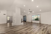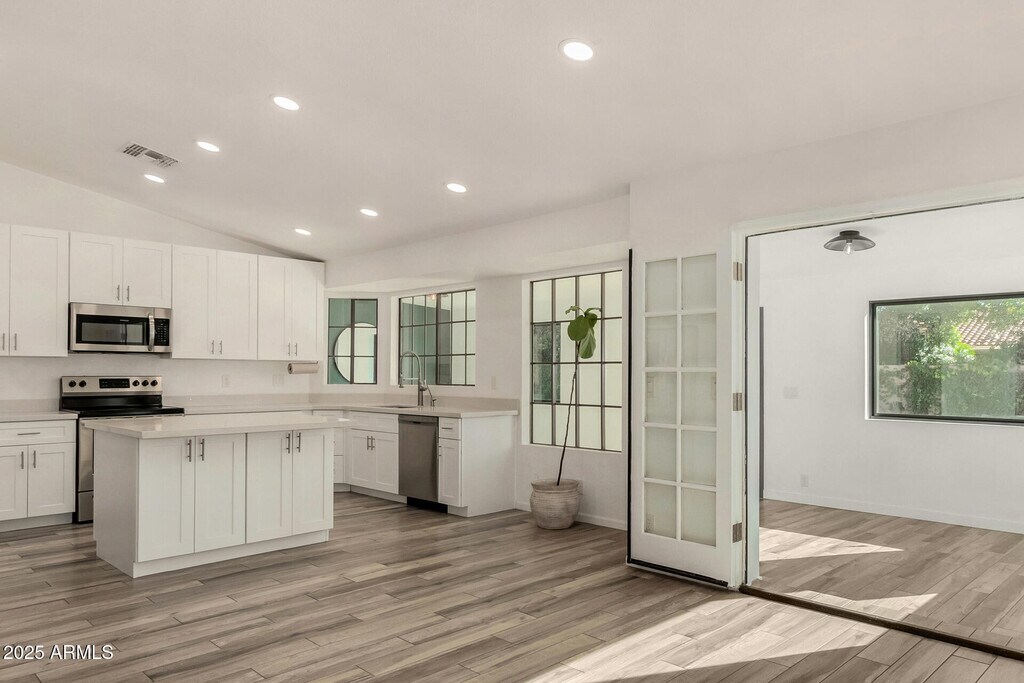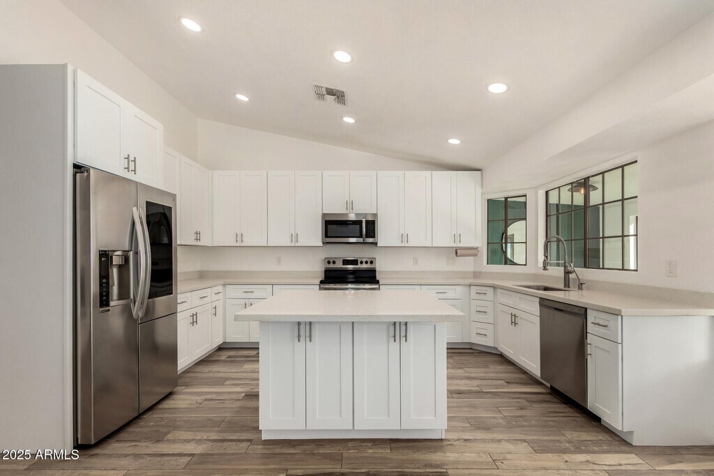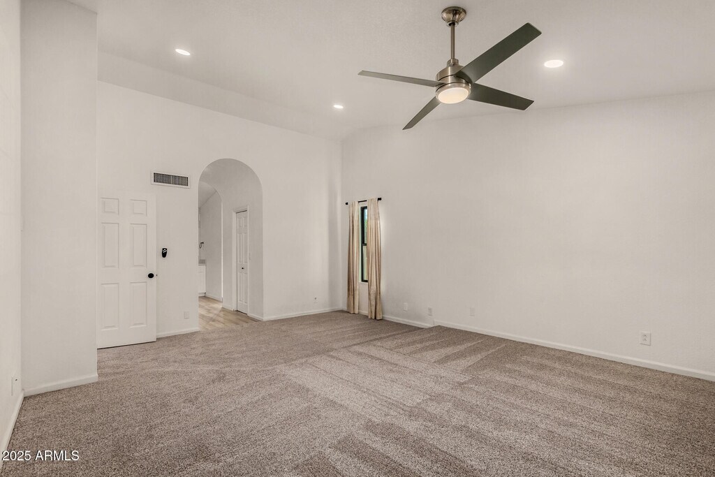 Amazing Gilbert location (well established,beautiful neighborhood)! Kitchen is an entertainer's dream - quartz counter tops,white shaker cabinets,and stunning stainless steel appliances with soft-close doors. Spacious open-floor plan design with vaulted ceilings is great for company,as is the large sun room and massive backyard with a fire pit. Tile floors,can lights,and remote control fans throughout. You won't want to leave the Master suite! Over-sized bathroom features two vanities,as well as double shower heads and shower bench seating area. This property has everything you're looking for!!