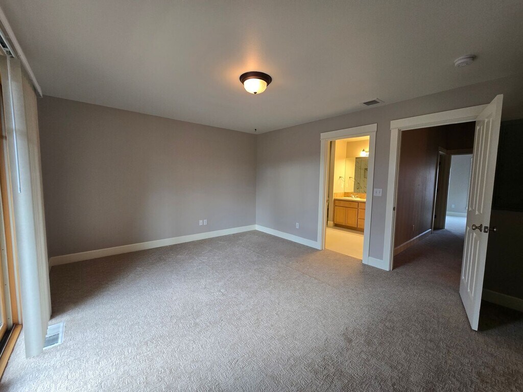 Welcome to "Live In Pine Meadow Village," a charming 2-story townhome nestled in the heart of Sisters, OR. This home boasts 1 spacious bedroom/den/office on the first floor with a convenient half bath. The primary bedroom, located upstairs, features an en-suite bathroom and a private balcony, offering a breathtaking view of the Three Sisters' peaks. The second bedroom and another full bathroom are also located on the second floor, ensuring ample space and privacy. The home is fitted with newer carpet throughout, enhancing its warm and inviting ambiance. The living room, complete with a propane fireplace, is perfect for cozy evenings. Also, has forced air furnace with heat pump. The kitchen comes fully equipped with all necessary appliances and is complemented by a handy pantry. Additional amenities include a covered front porch, perfect for enjoying the serene surroundings, and a detached double car garage. A washer/dryer set is also included as-is for your convenience. Experience the comfort and beauty of living in Pine Meadow Village. Included is the use of the Pool/Hot Tub! No Pets/Non-smoker