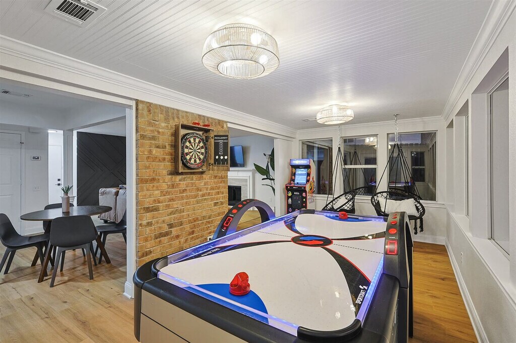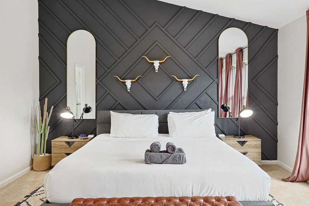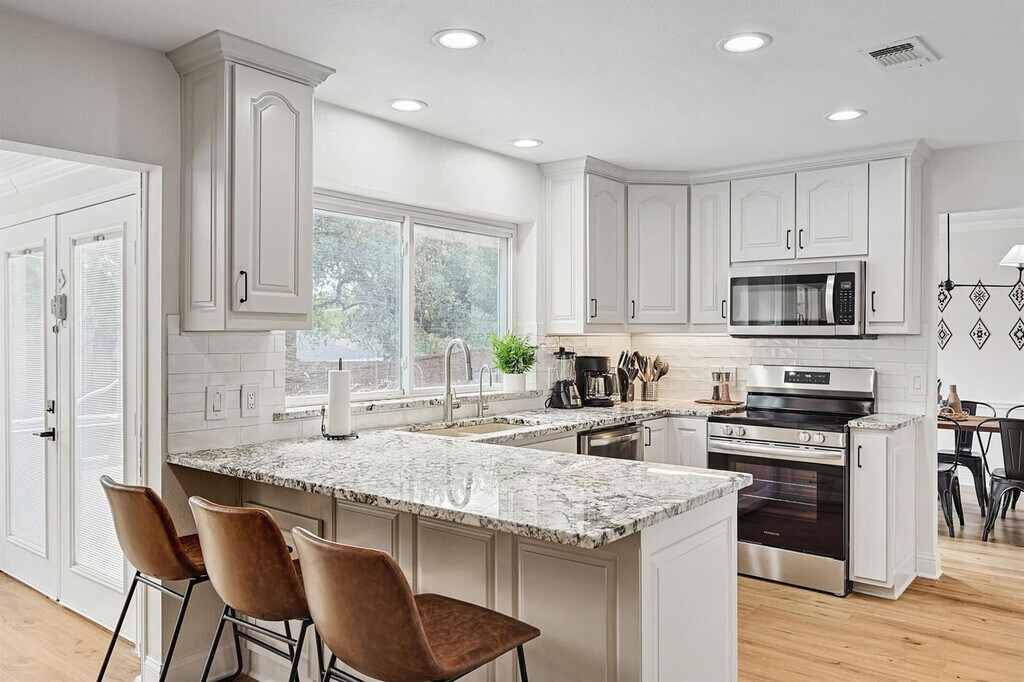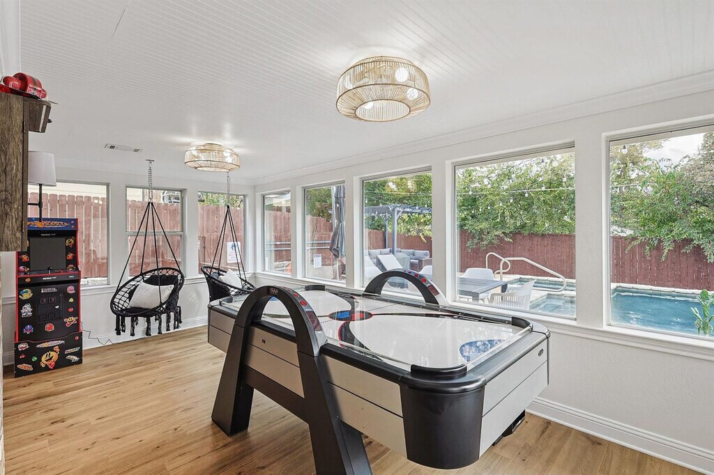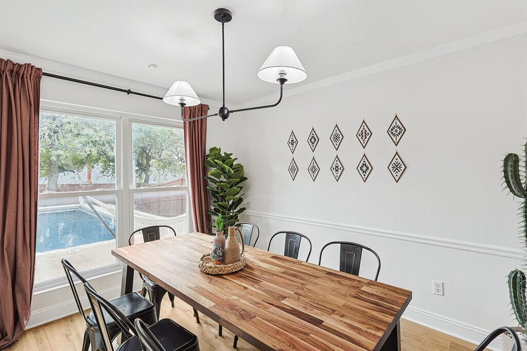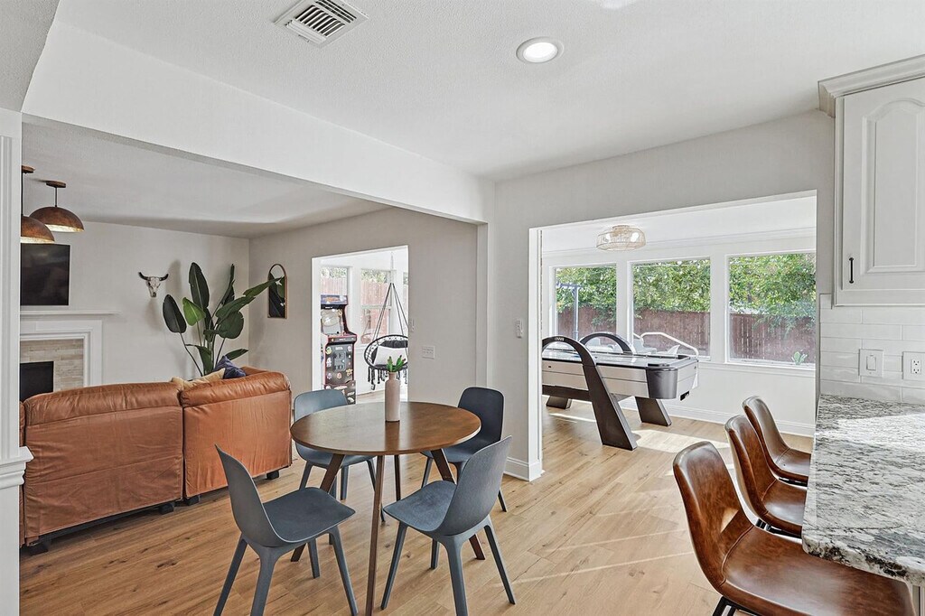 Gather your family and friends at this spacious retreat designed for fun and relaxation. Enjoy a private backyard paradise with a sparkling pool, fire pit, and BBQ grill. Inside, you’ll find a cozy cinema room, a lively game room, and plenty of space for everyone to unwind. With 5 bedrooms and 3 bathrooms, this stunning home comfortably hosts groups of up to 12 guests. Our home caters to both short-term and medium-term stays, making it an excellent choice for corporate housing needs. Whether you find yourself temporarily displaced from your home or require accommodation for your team during an extended project in our area, we provide a welcoming and comfortable "home away from home" experience. Cook up your favorite meals with ease in the fully equipped kitchen featuring stainless steel appliances, cookware, and all the essentials. The open-concept layout connects seamlessly with the living room for a social and inviting space. Enjoy meals together at the stylish dining area with seating for up to 8 guests. Relax in a cozy, Texas-inspired living room filled with charm and sophistication. Perfect for gathering, lounging, or enjoying a quiet night in. Free parking is available with space for 2 cars in the garage and 2 in the driveway. We welcome house-trained pets with a non-refundable pet fee of $150 per pet, with a maximum of 2 pets per stay. An additional nightly rate applies for more than 6 guests, with a $29/night fee for each extra guest. Please note that our spa heating element and jets are inoperable. Local Highlights include Adventure World, a family-friendly park with walking trails, picnic tables, and a huge playground for kids just a 2-minute drive away. NRH2O Family Water Park offers 17 acres of fun featuring 22 water slides, the world’s largest uphill water coaster, and a 5-level interactive play area, only a 13-minute drive away. Nearby parks include Green Valley Park, Cross Timbers Park, Richfield Park, Northfield Park, and more. Explore DFW with attractions like Fort Worth Water Gardens, a serene 4.3-acre urban oasis with waterfalls, fountains, and pools, and Fort Worth Stockyards, where you can step back into cowboy country with historic hotels, western shops, and rodeo vibes, both just a 20-minute drive away. Six Flags Over Texas offers thrilling rides, live shows, and 200 acres of fun for the whole family, also a 20-minute drive away. If you arrive by car, you will be happy to know that we offer a free parking spot. If driving is something you would like to avoid during your stay, Uber and Lyft are only minutes away 24/7. Smoking of any type is not allowed, with violations subject to a $450 fine plus the cost to clean, deodorize, and repair damages. Check-in is at 4pm and checkout is at 10am. No parties or events are allowed. Pets should be discussed in advance; we only allow house-trained pets and ask to make sure they keep off beds and furniture. Pet cleaning fees apply. Full disclosure policy for numbers of people on the property at any time with security camera verification to comply with local laws and booking platform policies. Rest assured, no cameras are in any inside private areas, respecting the privacy of our guests. Small low-key gatherings are allowed only upon request and approval in advance. A noise alert device is installed to measure decibels and send alerts if reasonable noise levels are exceeded, ensuring compliance with local noise ordinances and occupancy regulations. Includes a cinema room that perfectly functions as a bedroom, equipped with a plush, queen-size sofa bed. All our smart TVs are equipped with streaming apps like Netflix, Amazon, and YouTube, allowing guests to log in with personal accounts. Registration Number: RENTSF-