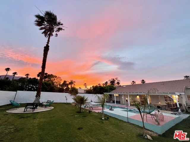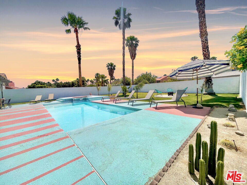 AVAILABLE LONG TERM OR MONTHLY (31+days) - Welcome to this stunning Mid-Century Bohemian Oasis minutes from Downtown Palm Springs! Remodeled in 2021, this stylish and thoughtfully designed home captures the essence of both eras, blending the timeless charm of mid-century aesthetics with the free-spirited vibes of bohemian decor. Step into multiple spacious living areas adorned with vibrant colors, retro furnishings, and eclectic artwork that transport you back to the golden age of design. Sink into the plush sofas and enjoy entertainment on state-of-the-art Smart TVs, perfect for cozy movie nights or catching up on your favorite shows. The kitchen is a true masterpiece, featuring modern amenities seamlessly integrated into the mid-century architecture. Whip up culinary delights with ease using updated appliances and ample counter space. Enjoy your meals in the multiple dining areas with views of the expansive yard.Speaking of the yard, get ready to be amazed! The oversized pool is the centerpiece of the outdoor space, inviting you for refreshing swims or simply basking in the sun on the sun loungers. Unwind in the rejuvenating jacuzzi as you watch the stars twinkle in the night sky. The fire pit area sets the stage for unforgettable evenings. Hungry for relaxation? Lounge in the hammock with a good book and let time slip away. When the day winds down, retreat to the elegantly designed bedrooms. Each room carries its own unique bohemian flair and offers the comfort you need for a restful night's sleep. In addition to the stunning aesthetics, we've incorporated modern conveniences for your comfort. A water softener ensures a luxurious bathing experience, and the entire home is equipped with high-speed Wi-Fi to keep you connected. Located just minutes away from downtown Palm Springs, you'll have easy access to the area's renowned dining, shopping, and entertainment. Come and experience the magic of the desert in a home that effortlessly marries the past with the present. Book your stay today and make unforgettable memories in this enchanting desert haven! MLS# 26656839