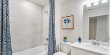 3 Bed, 2.5 Bath, newer townhome and one car garage. Everything's features: Kitchen white cabs/ with white Quartz counter tops, 42'' cabinets. Frigidaire stainless steel appliances (range, dishwasher, microwave, and refrigerator), Quartz vanities, ceramic wood tile in wet and main areas (living/dining, halls), water heater, pre-wired security system, screened lanai, window blinds throughout, sprinkler system, and paved drive way , internet included with the ren.