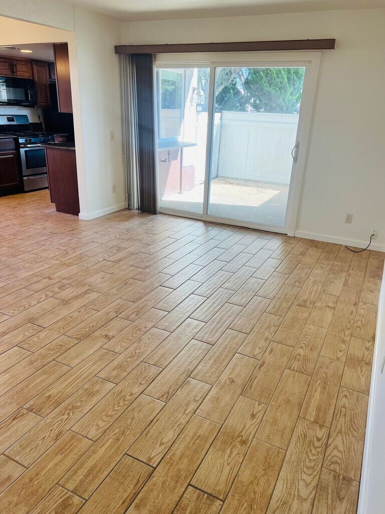 **Special Offer for half off first months rent** Come see this 2 bedroom 1 bath located in Del Cerro. This is a bottom floor unit right off Navajo. Hard flooring in kitchen, living and dining room. It has a good size fenced in patio with a lockable storage closet. Gas stove, dishwasher and built in microwave. Both bedrooms have nice new carpet and sizable closets. One has a walk in closet. It comes with two parking spaces. Nice sized bathroom with double sink vanity. The community has a pool, clubhouse, jacuzzi and BBQ picnic common area. Water, trash and sewer included in rent. Laundry room with plenty of cashless machines. Near Cowles Mountain and Mission Trails hiking patch. One block from Keil’s Grocery and shopping center. Patrick Henry High and Lake Murray nearby. NO Pets. Please contact me if you’d like to schedule a viewing