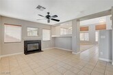 WELCOME HOME***4 beds, 2,5 baths, 2 car garage, Spacious floor plan, living room w/ vaulted ceilings, carpet, tile floors, separate family room/dining room combo, cozy fireplace, open kitchen w/ quartz counters, dark wood cabinets, primary bedroom w/ ceiling fan, primary bathroom w/ dual sinks & tub, generous sized bedrooms, washer/dryer, private backyard w/ covered patio, desert landscaped, synthetic grass play area & fire pit. Located near schools, shopping, dining & entertainment. This home will be ready to move in February 1st 2026, contact agent to schedule an appointment.