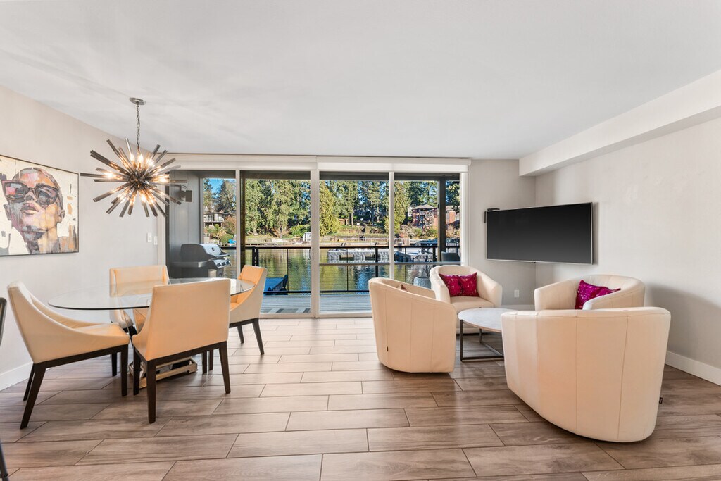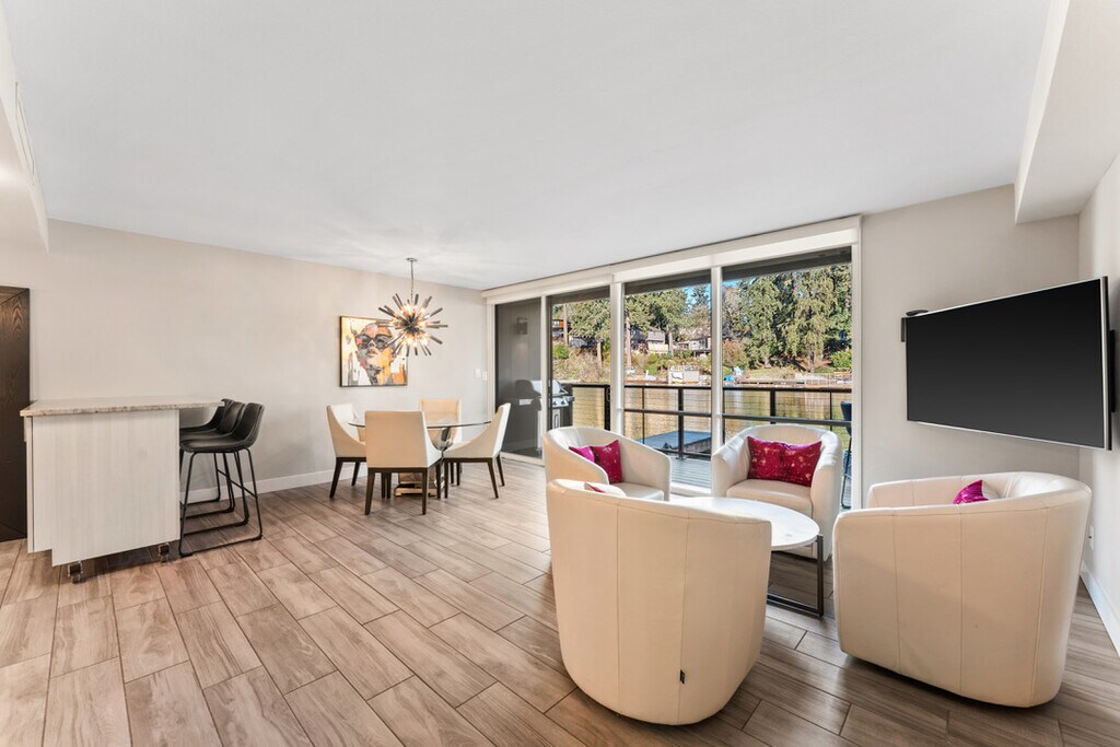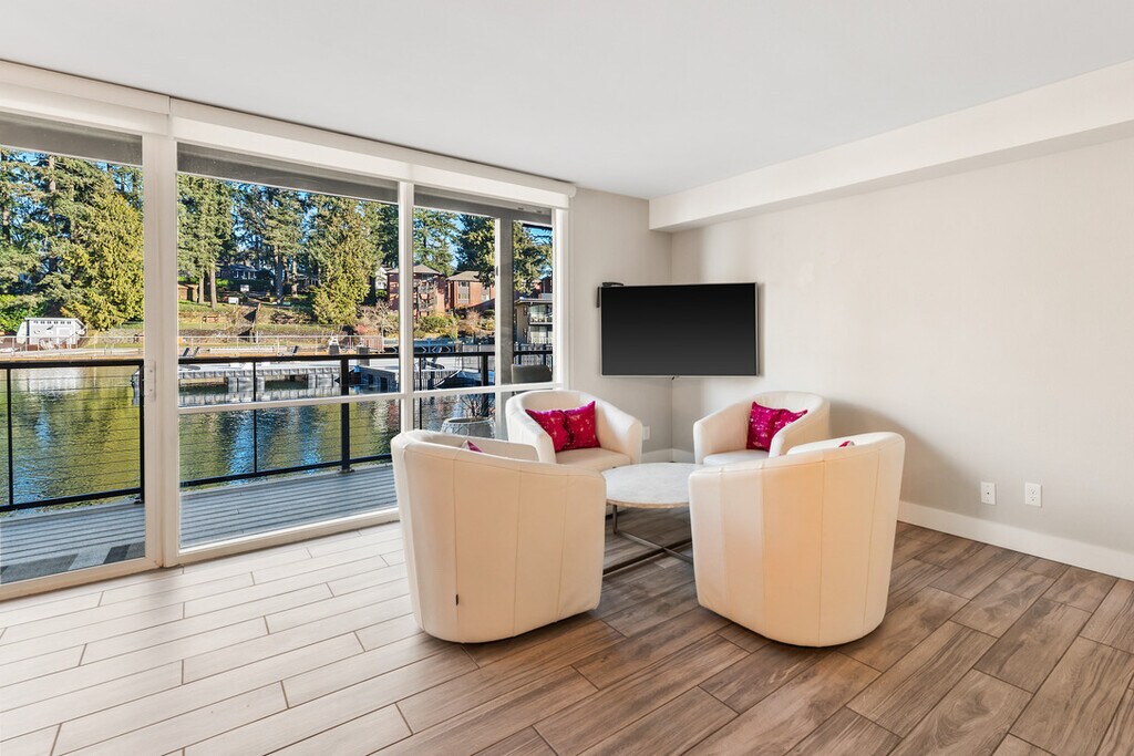 The Ryanne | Lakefront Luxury in Lake Oswego, OR Welcome to The Ryanne, a rare waterfront retreat perched directly on the shores of Lake Oswego. This fully furnished 3-bedroom, 2-bathroom executive home is more than a residence—it's a lifestyle experience. With floor-to-ceiling sliding glass doors that open to a private floating deck, this home blends natural tranquility with modern luxury in one of the region's most sought-after communities. Step inside and be greeted by uninterrupted views of the lake, dancing light on the water, and a peaceful energy that invites you to unwind. The living area is warm and contemporary, with plush furnishings, sleek finishes, and curated décor that make the space both elegant and inviting. A premium sound system and open layout create the perfect setting for entertaining or relaxing evenings at home. The gourmet kitchen is fully stocked with high-end appliances and ample counter space, making every meal a joy—whether cooking solo or hosting guests. The dining and living spaces flow seamlessly together, centered around the lake's natural beauty just outside your windows. The Ryanne offers three versatile bedrooms, including a primary suite with private deck access, allowing you to wake to soft sunrises reflecting off the water. The second bedroom is arranged as a welcoming guest retreat, while the third functions as a flexible space—ideal as a second guest room, home office, or creative studio. Both bathrooms feature spa-like finishes and modern design, offering a peaceful close to each day. The Ryanne is fully furnished and move-in ready, with all utilities and high-speed Wi-Fi included. Guests enjoy in-unit laundry, two dedicated parking spaces, and direct access to a private floating deck overlooking the lake. HOA amenities include a private fitness center, walking trails, and an exclusive clubhouse—elevating your living experience with convenience and elegance. Located just minutes from downtown Lake Oswego, The Ryanne offers a quiet escape with walkable access to boutique shops, fine dining, artisan cafés, and weekly farmers markets. Families will appreciate the home's placement within the top-rated Lake Oswego School District, with nearby access to Forest Hills Elementary, Lake Oswego Junior High, and Lake Oswego High School. For those commuting to Portland, the home is conveniently located near Highway 43 and I-5, offering a smooth connection to downtown, OHSU, or the Westside tech corridor. Whether working remotely, commuting, or enjoying retirement, The Ryanne offers location, luxury, and a true sense of home. Professionally managed by Ibis Properties, The Ryanne provides a rare opportunity to live lakeside without sacrificing proximity to the city. Whether you're sipping coffee on your private deck, enjoying a sunset dinner over the water, or exploring the best of Lake Oswego's local charm—this home invites you to relax, restore, and reconnect. For more listings and information, visit our website at